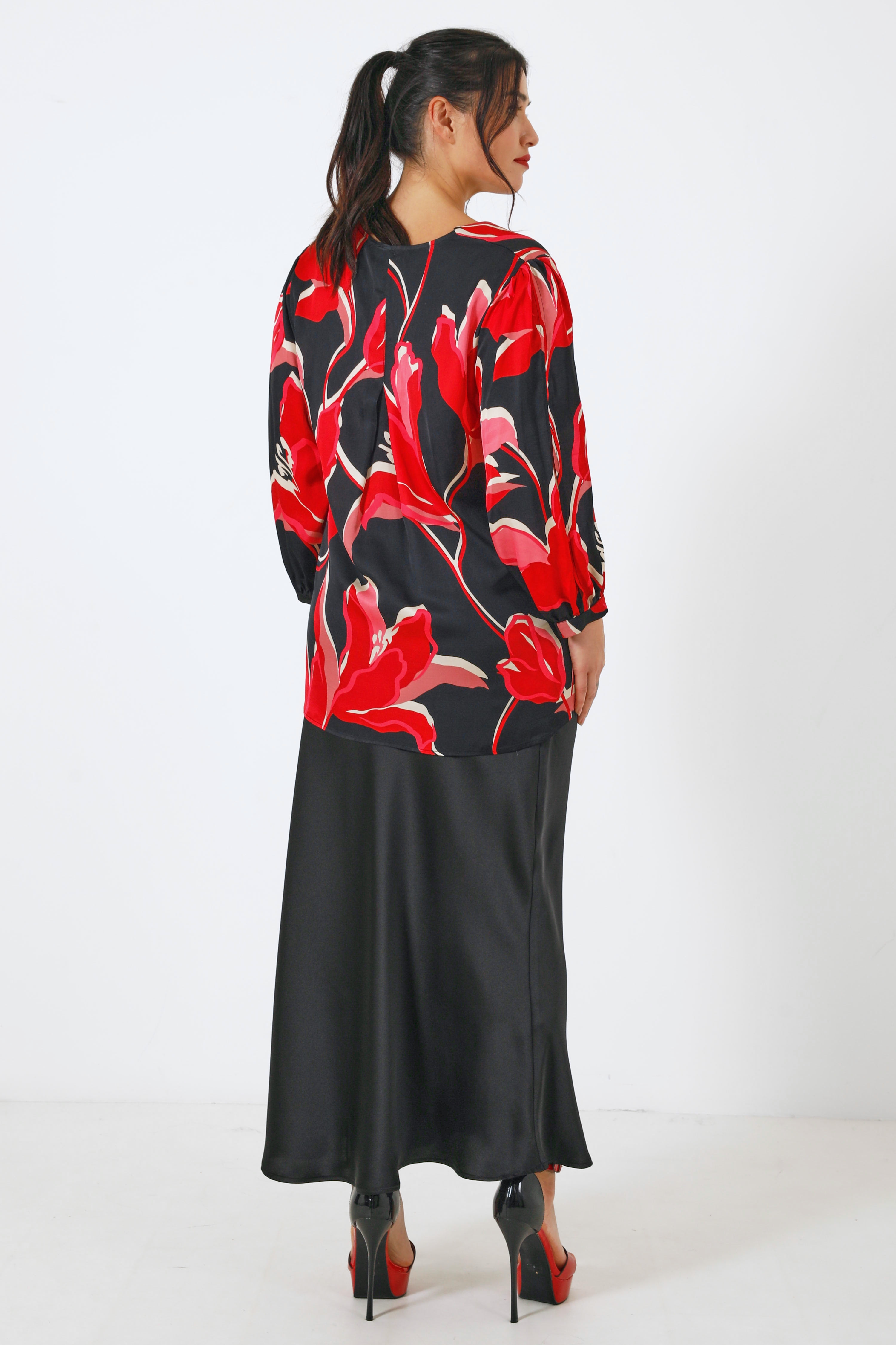 Satin floral print blouse