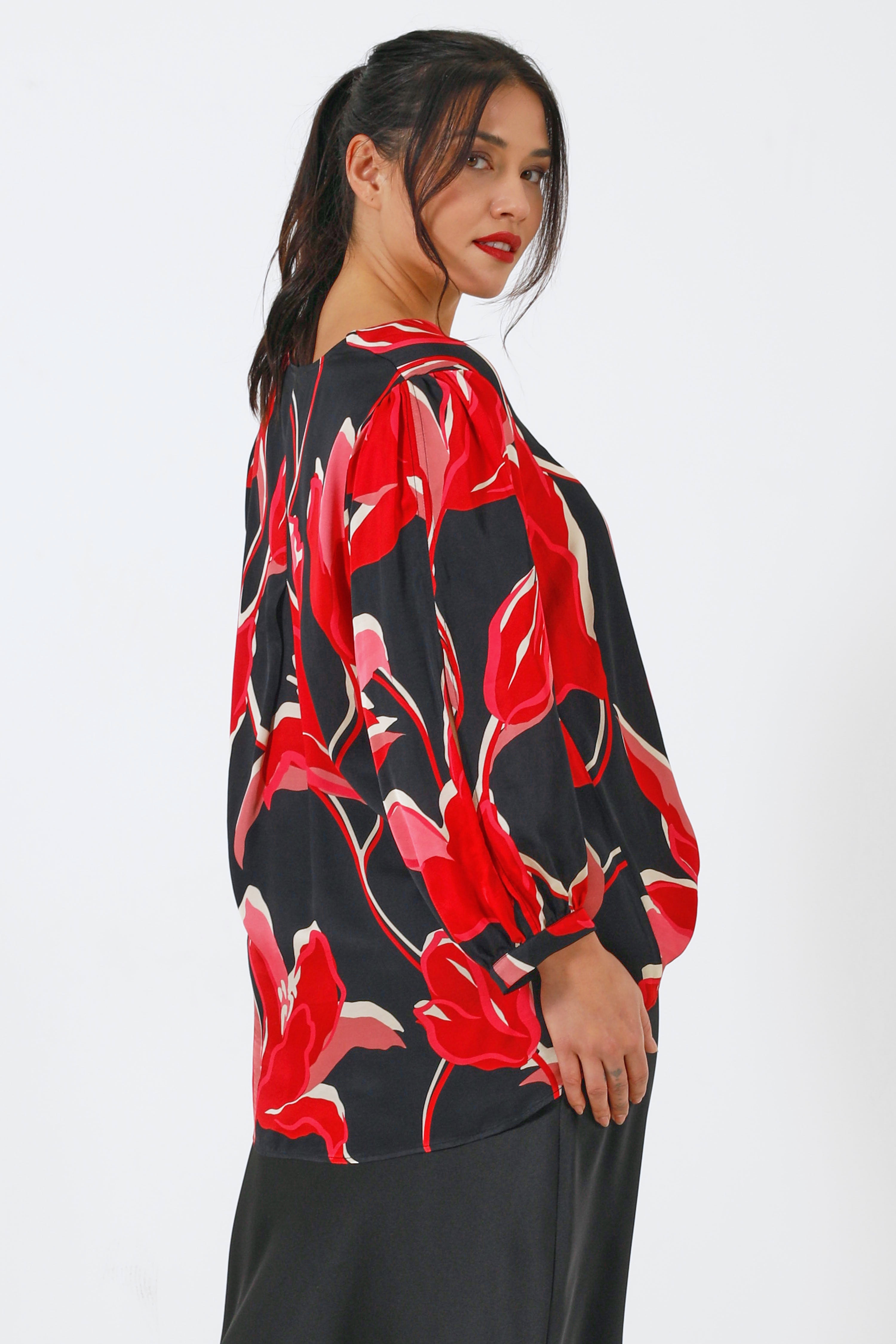 • Blouse in satin floral print.