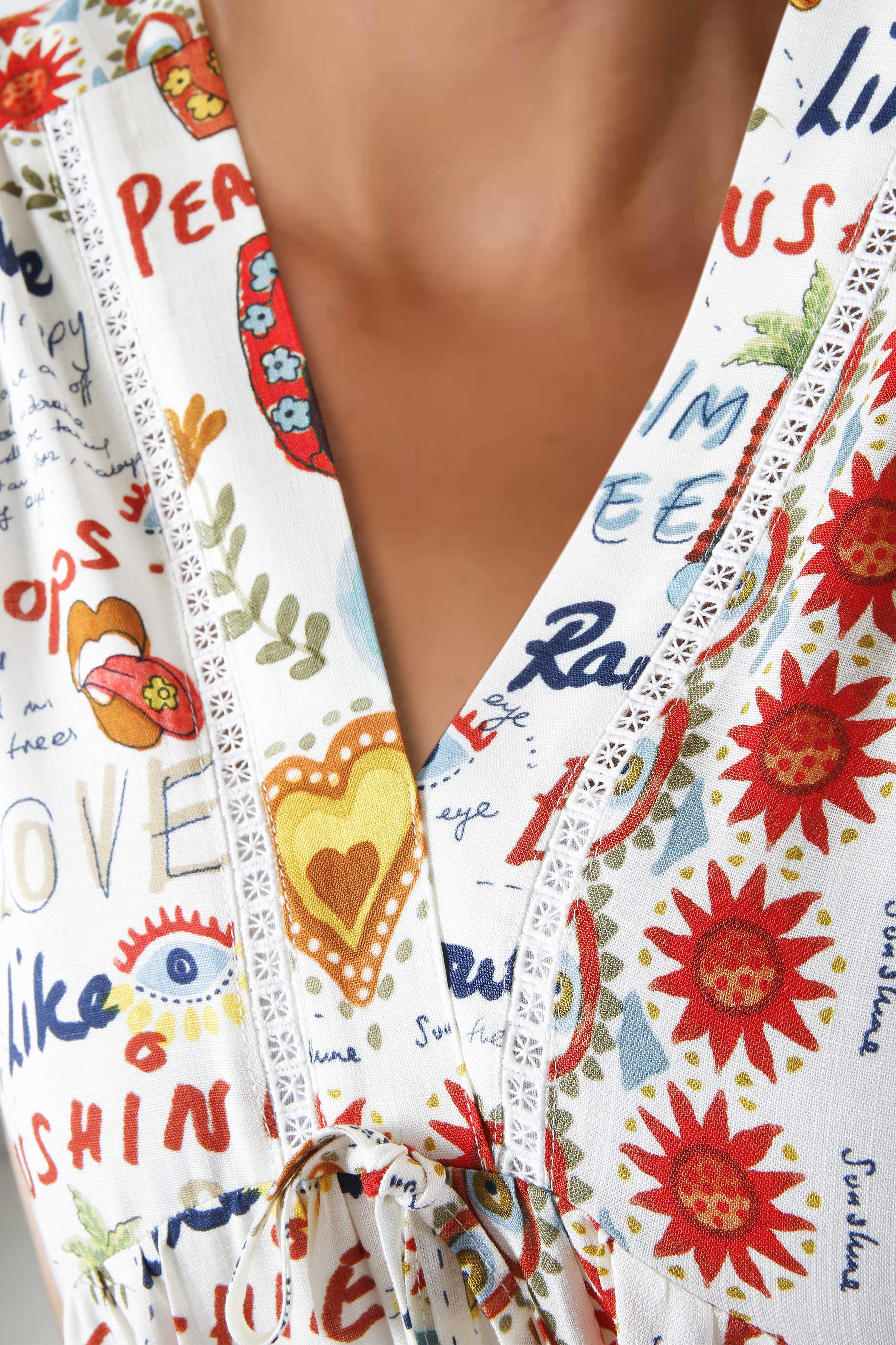• Under the bust, three gathered ruffles give a very vaporous effect.