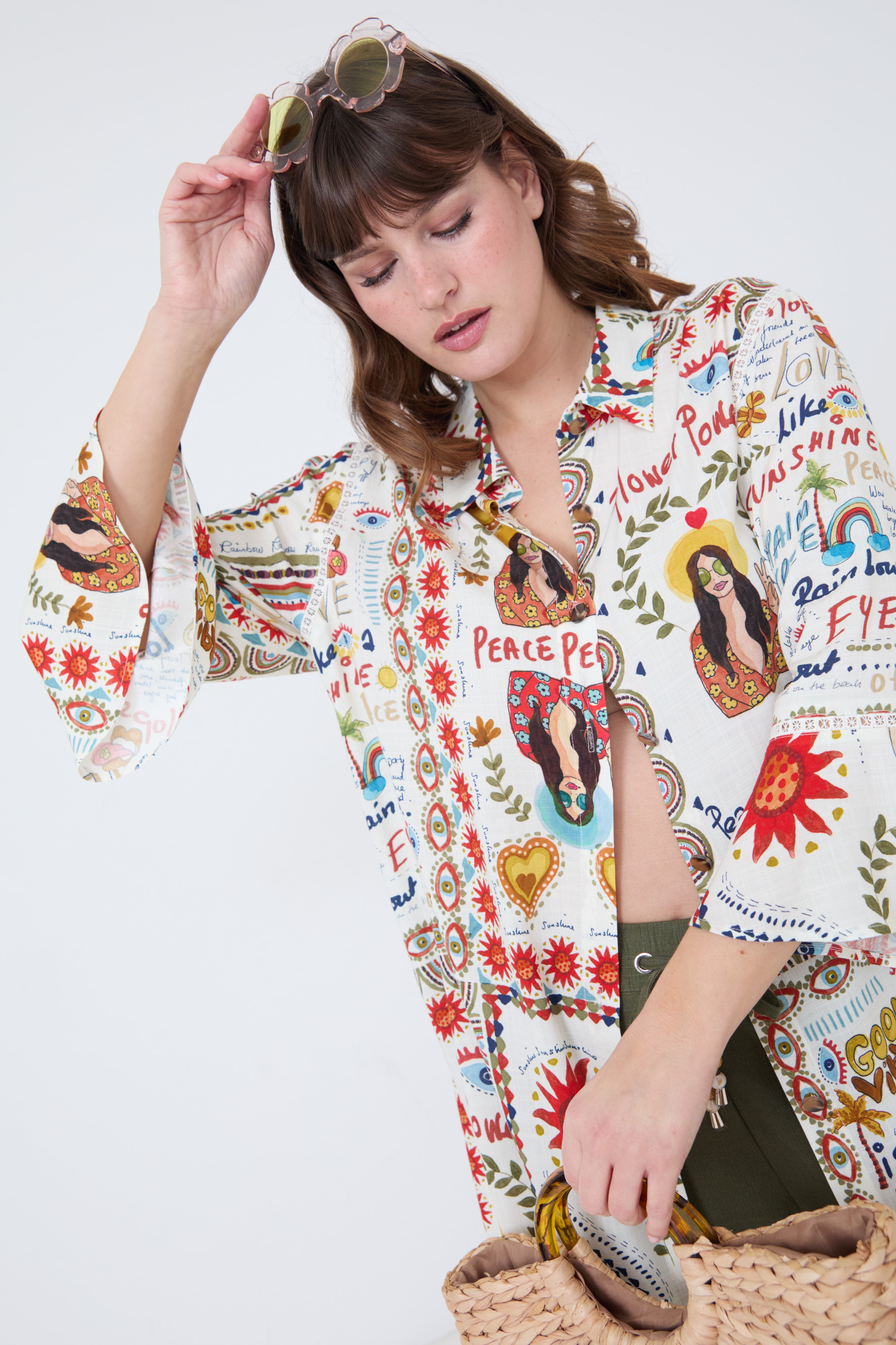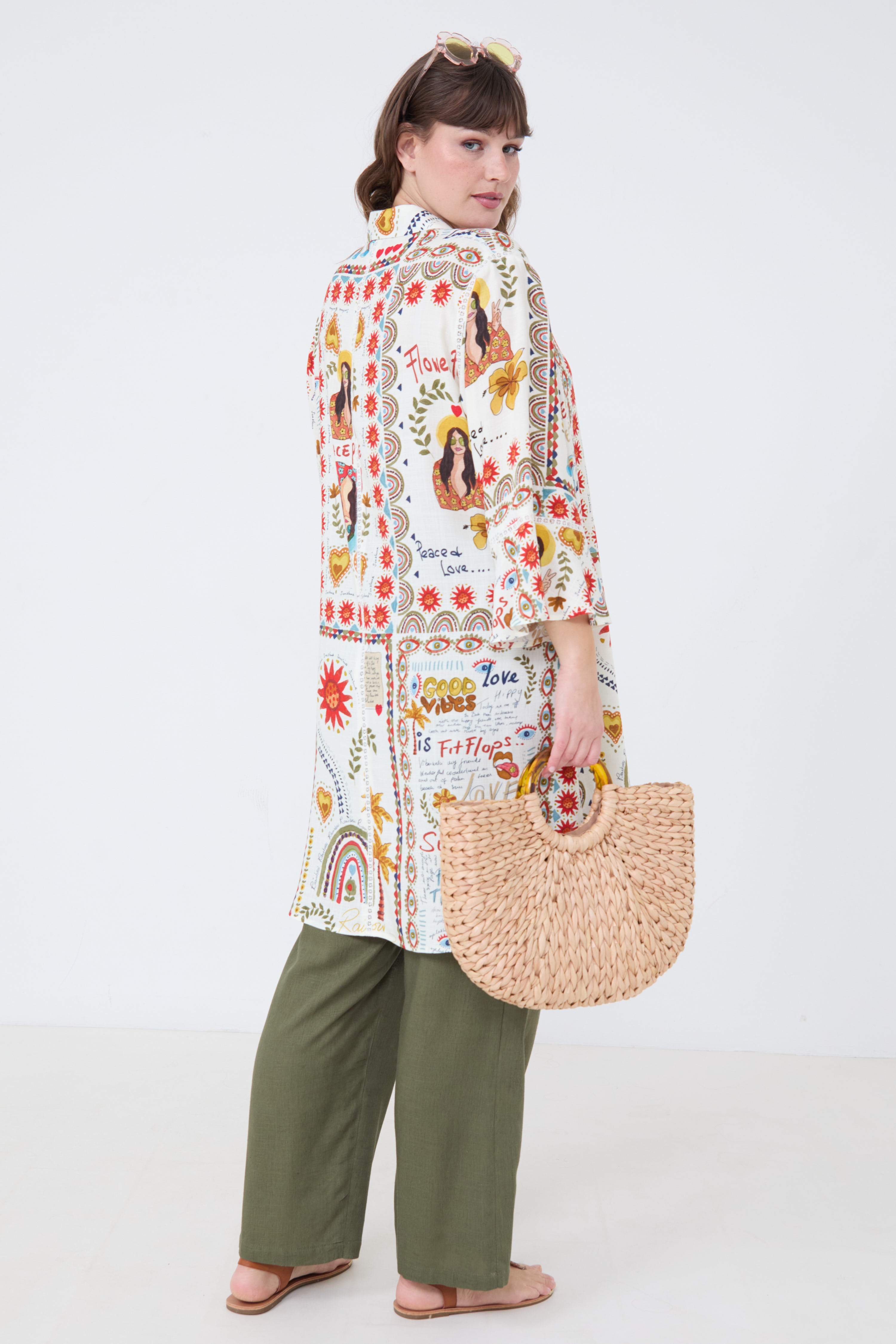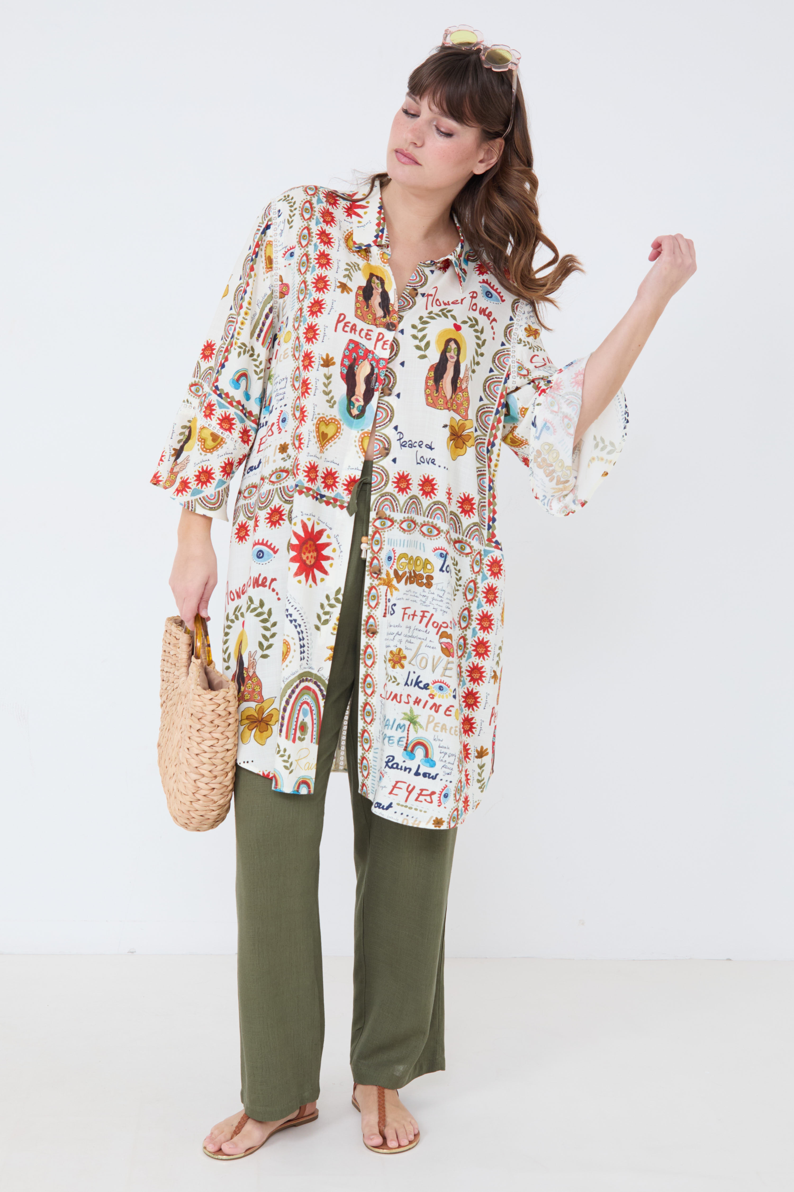 • ¾ sleeve finished with a wide frill, macrame braid in between.