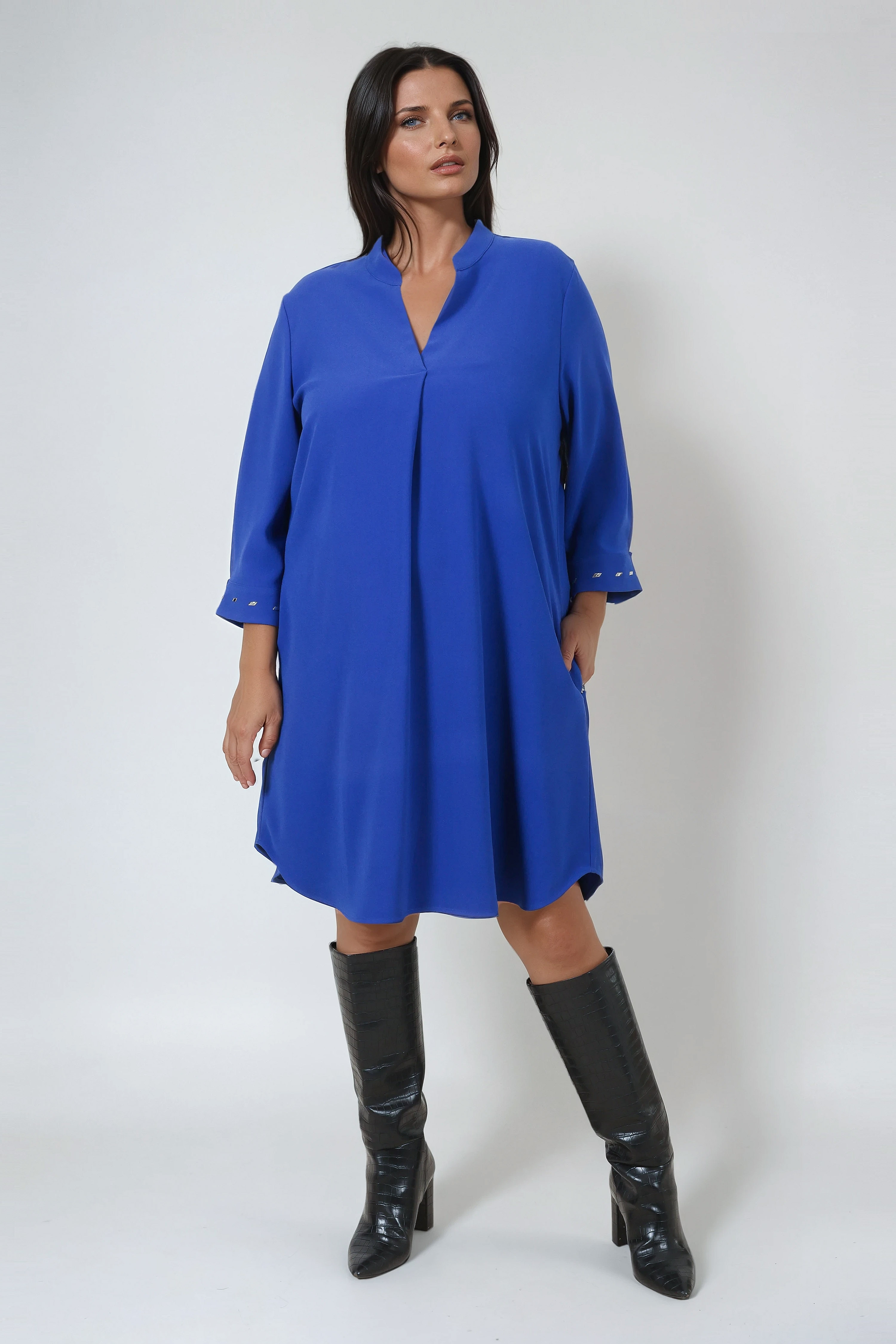 Straight, plain dress with studded cuffs, high-end crepe fabric