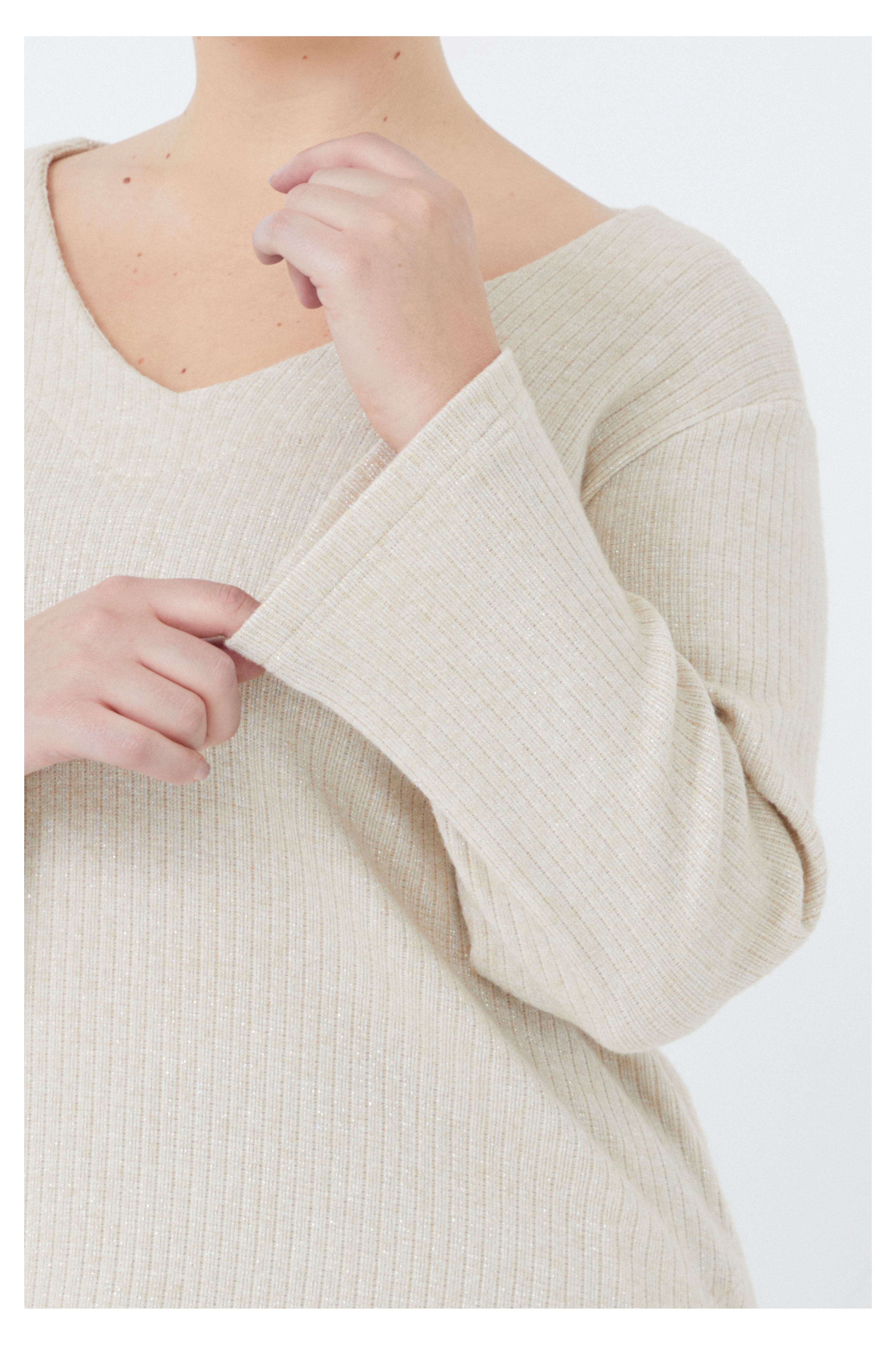 • The soft knit is subtly enhanced with shimmering lurex threads, for a discreet luminous effect that elegantly captures the light.