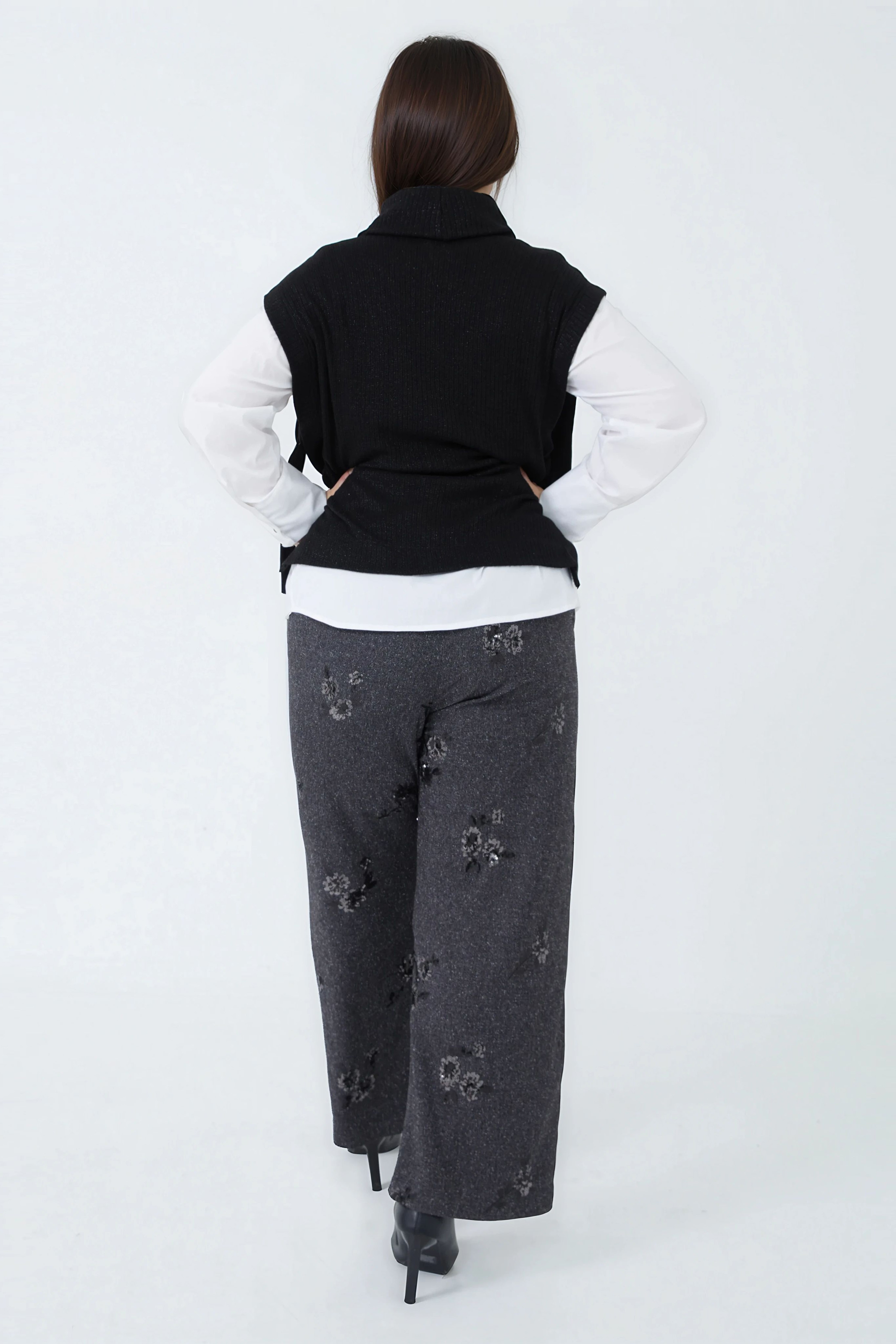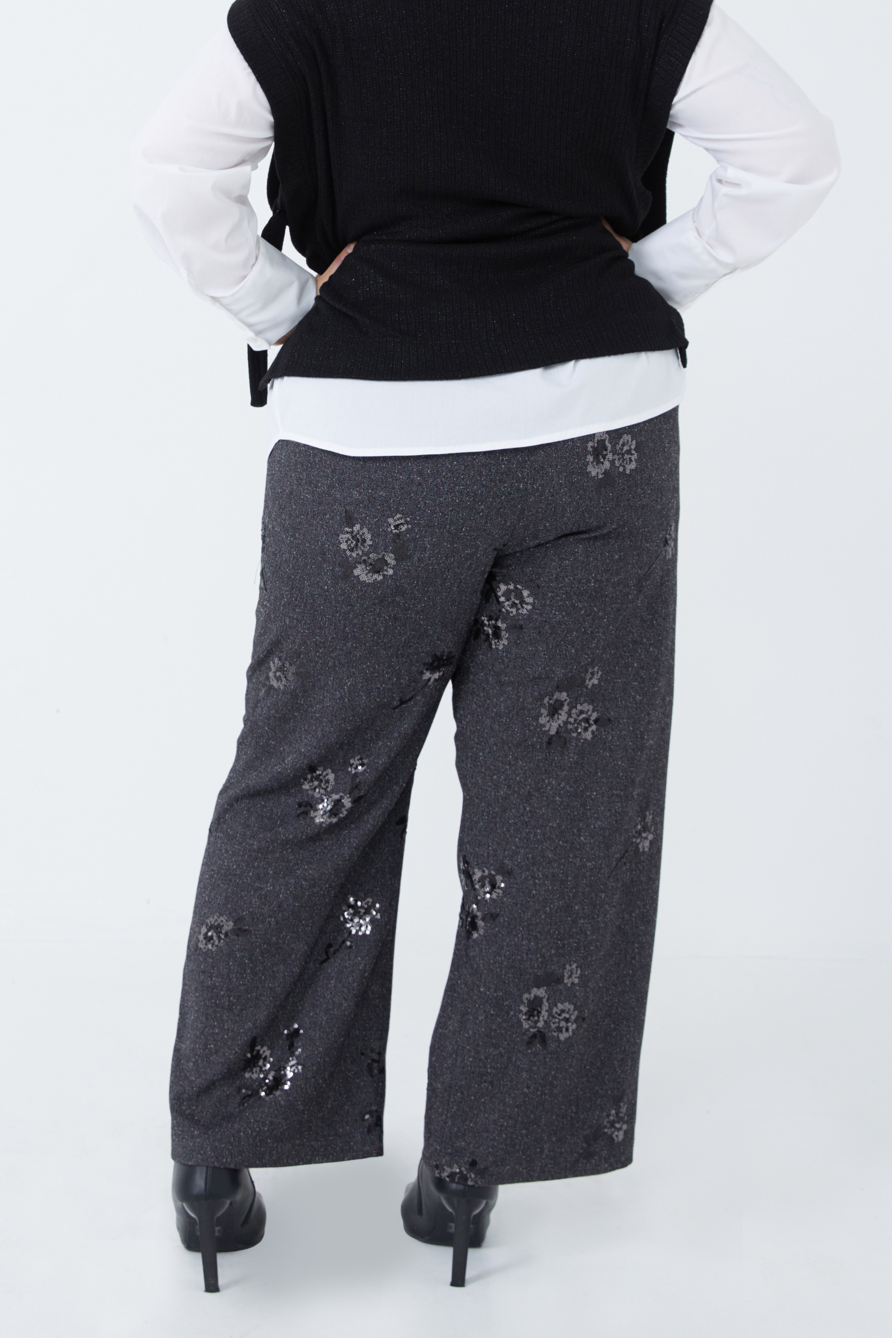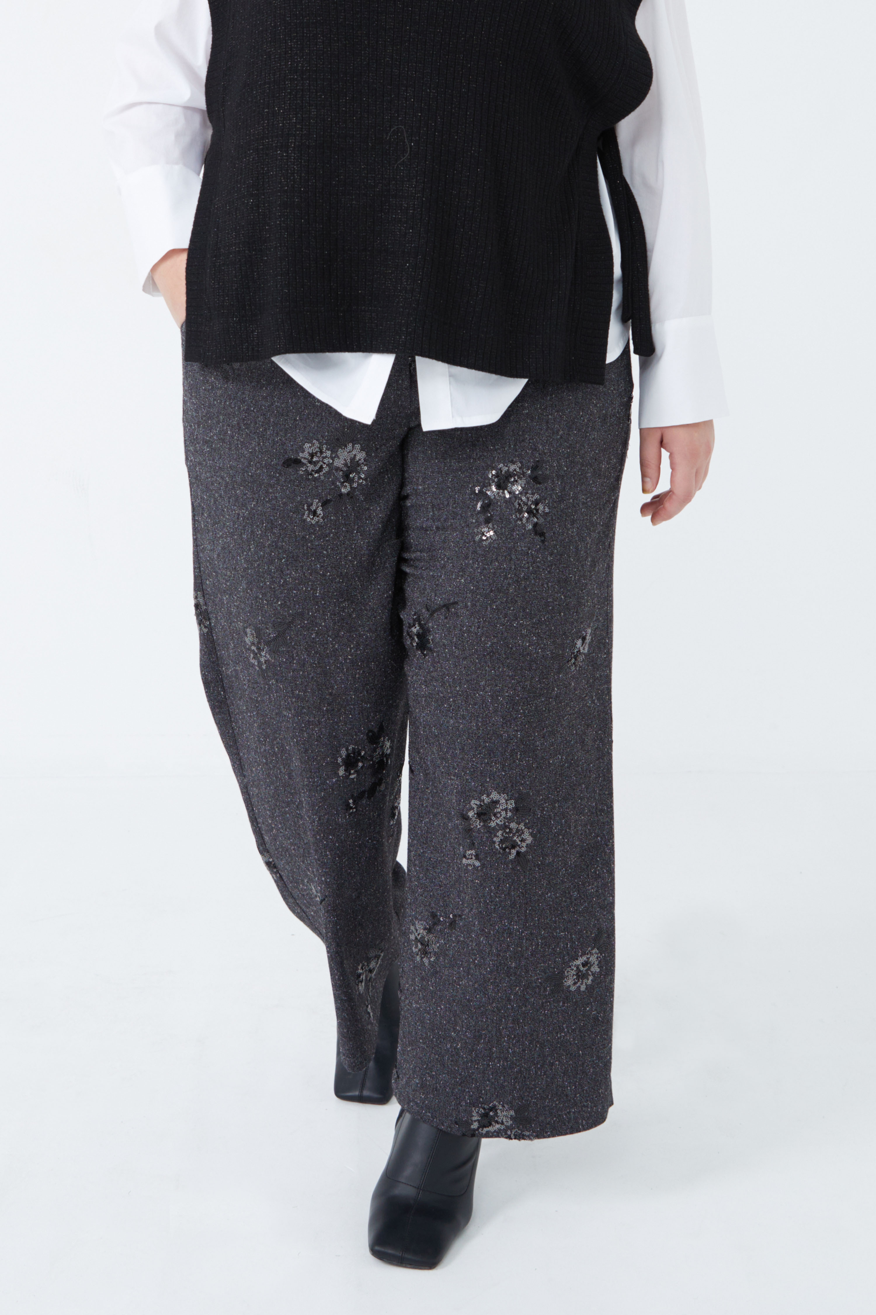 Add a touch of subtle sparkle to your winter looks with these wide-leg trousers in soft, flowing poly-viscose, enhanced with shimmering floral sequin patterns.