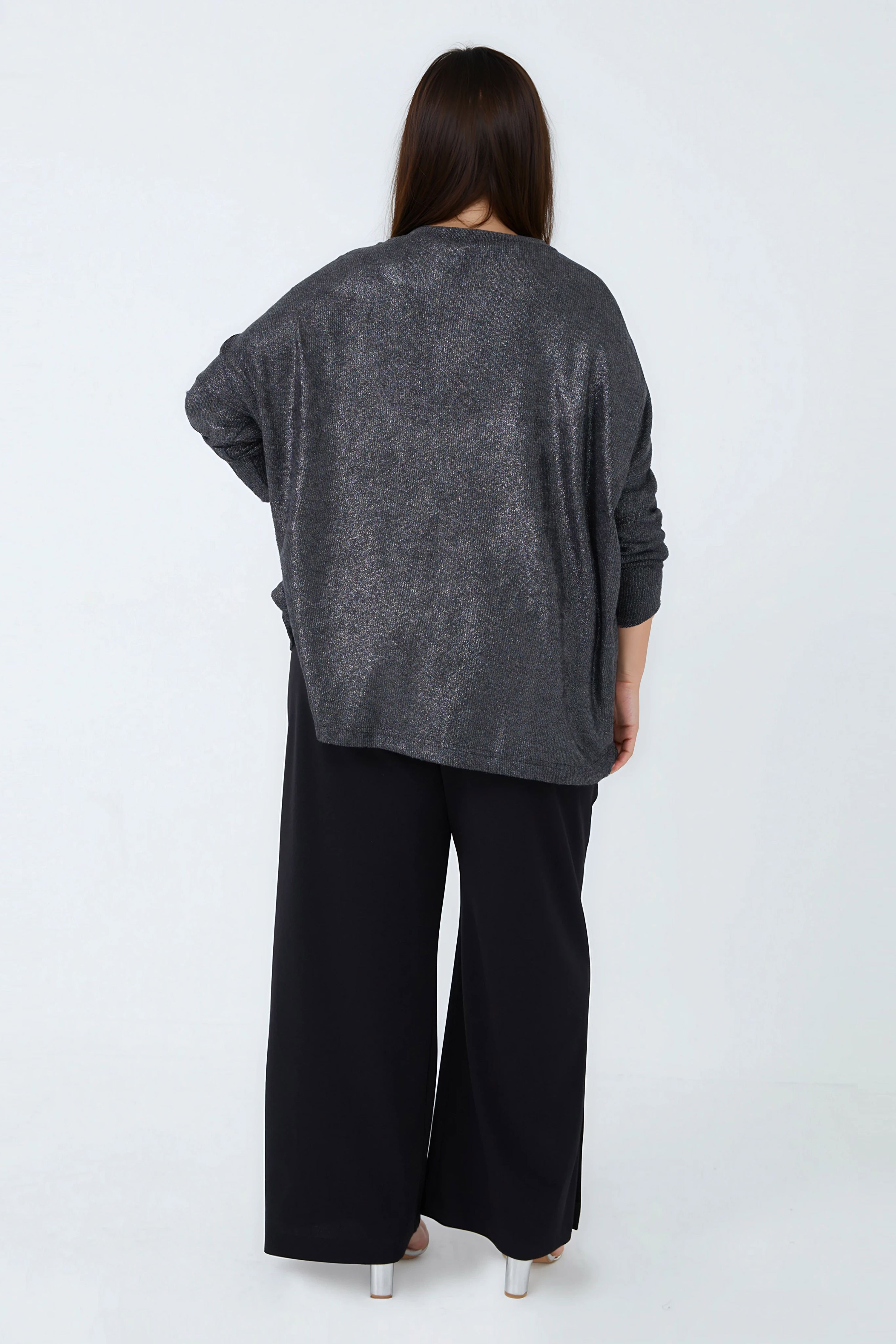 • Elegance and comfort combined with this oversized lurex knit sweater.