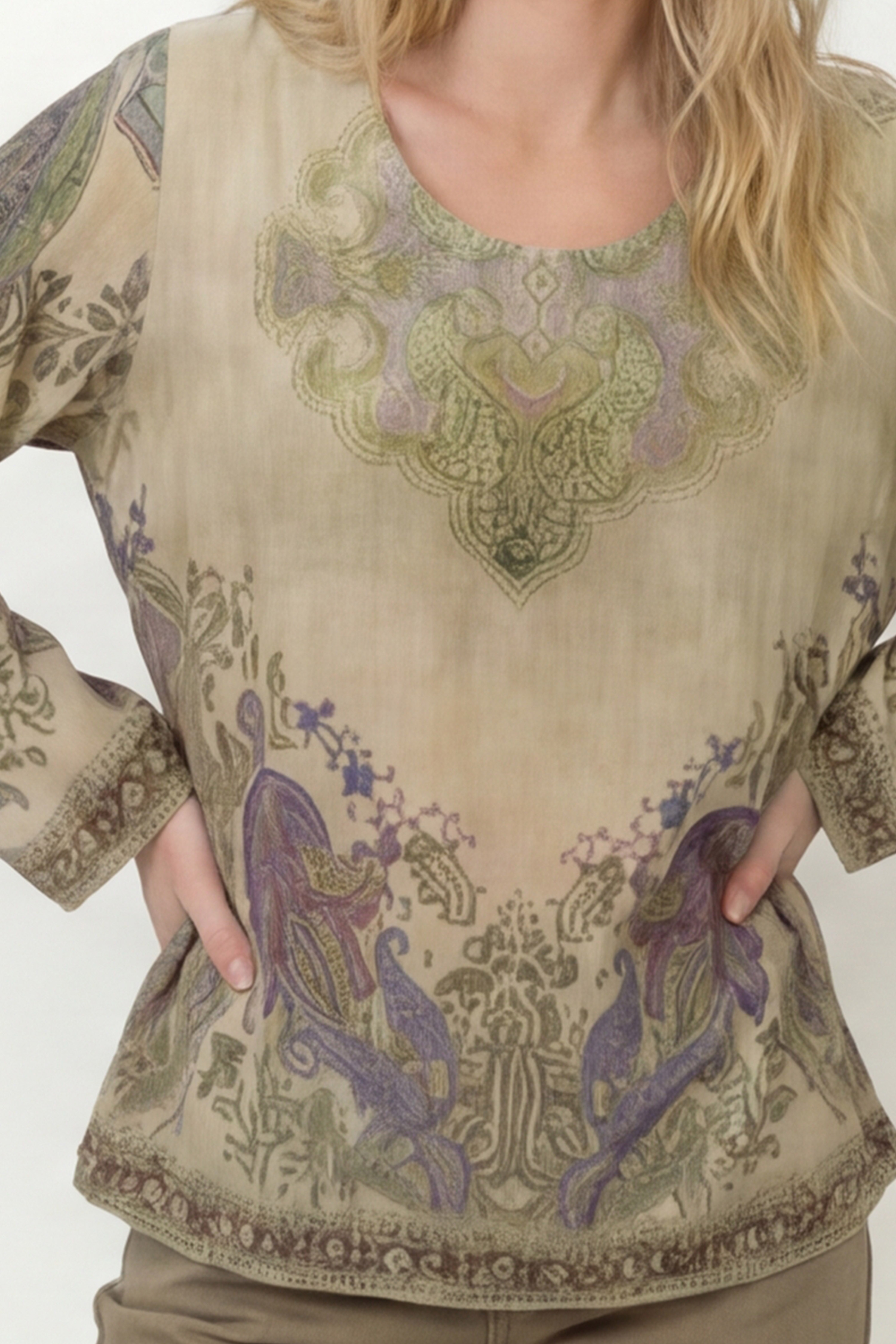 Add a touch of bohemian elegance to your wardrobe with this Jean-Marc Philippe blouse in fluid viscose crepe.