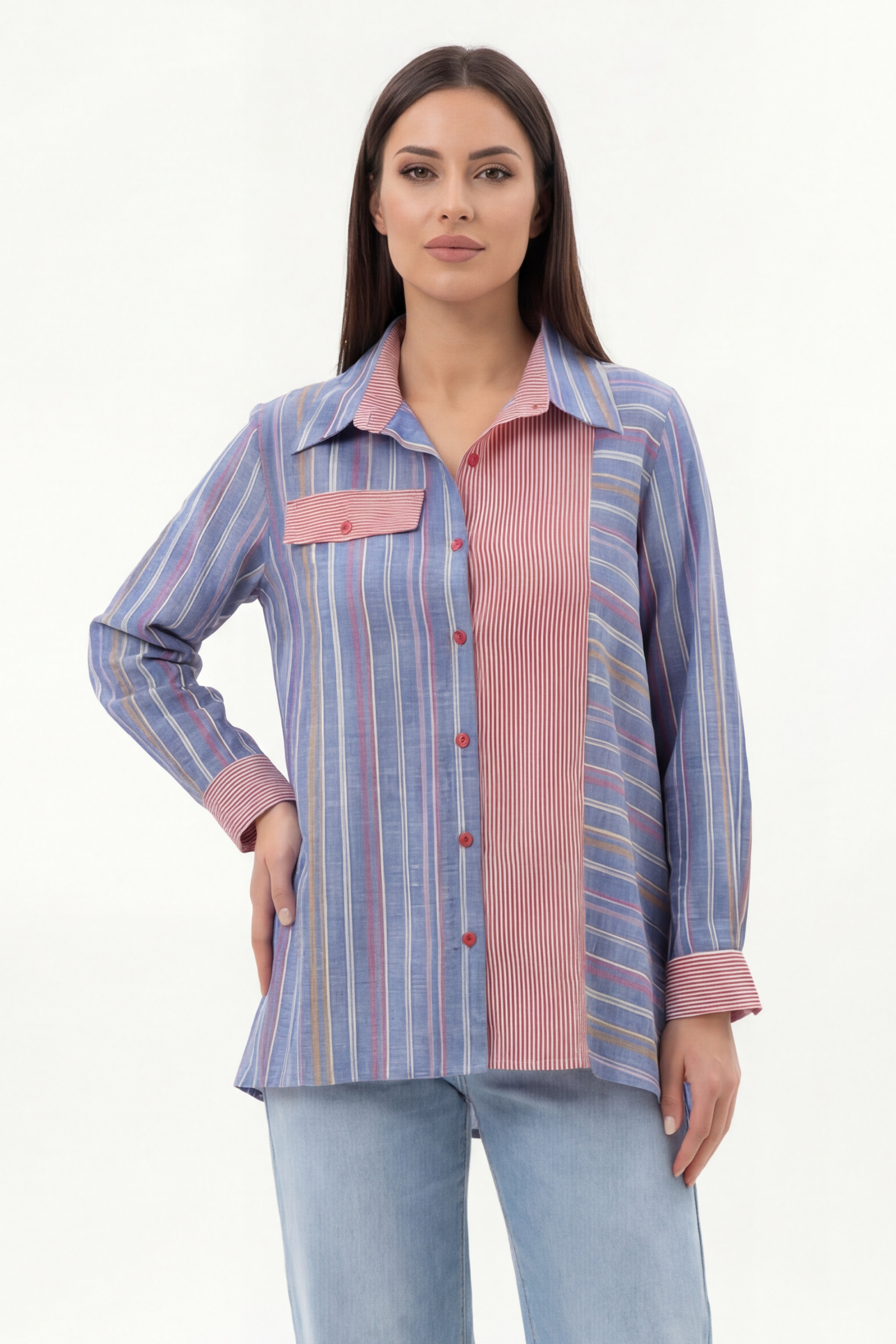 Striped patchwork cotton shirt