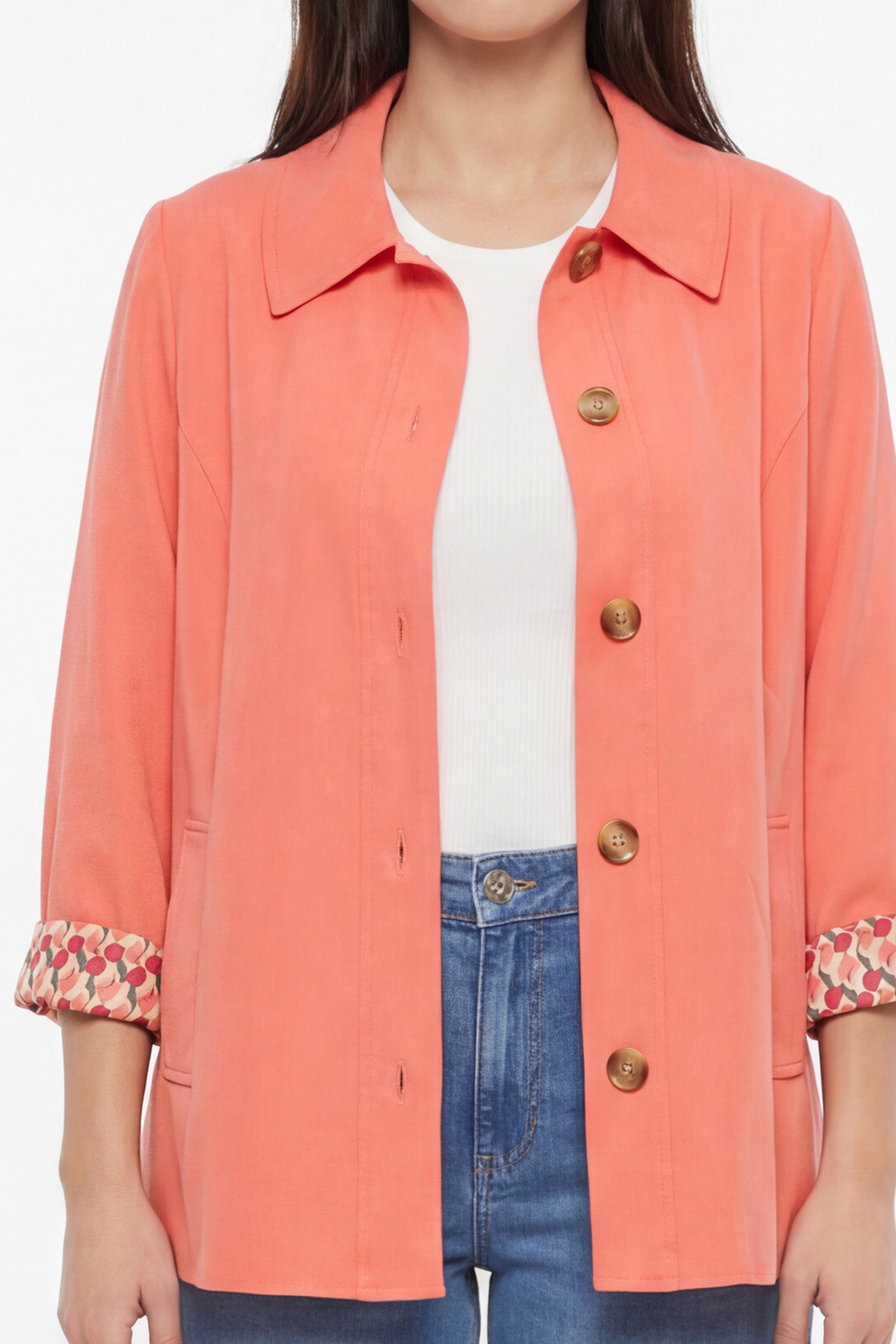 • Easy to pair with jeans, flowing trousers or a dress, this coral jacket instantly brightens up your looks while ensuring optimal comfort.