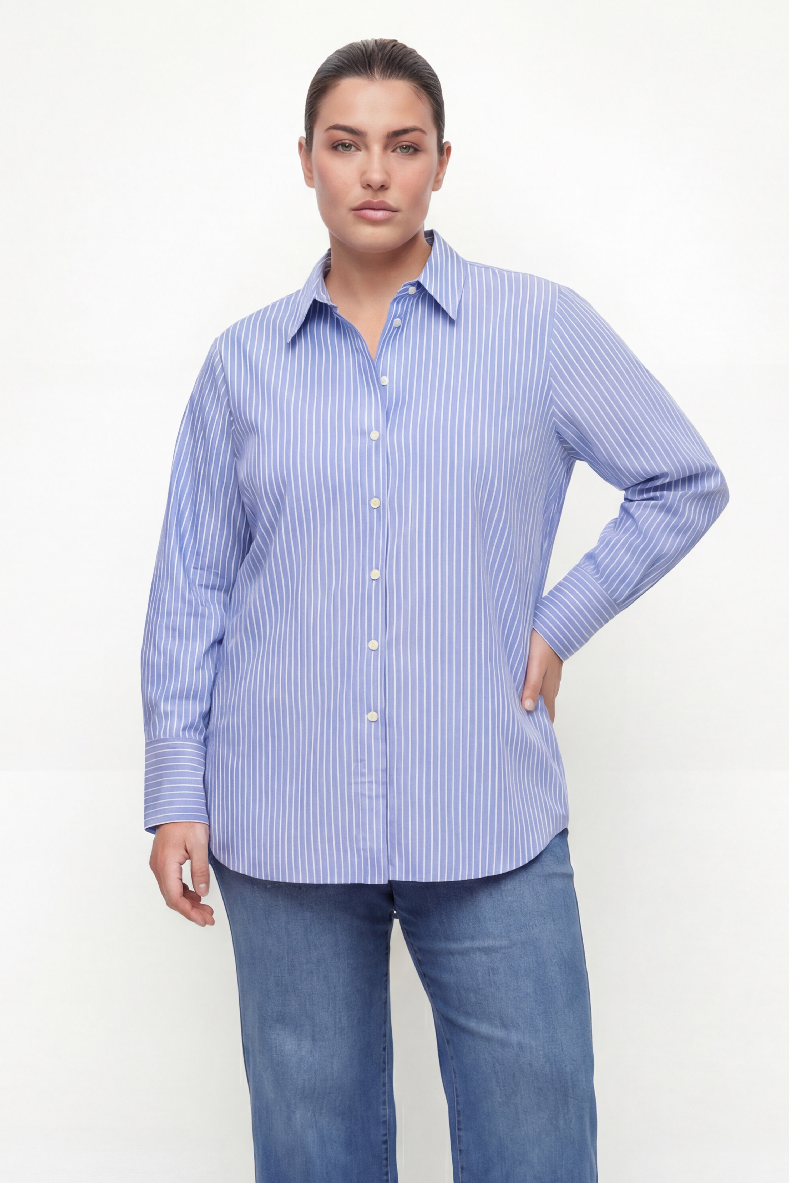 • The classic collar, buttoned cuffs and rounded hem ensure a neat style, ideal for both a casual look and a more formal outfit.