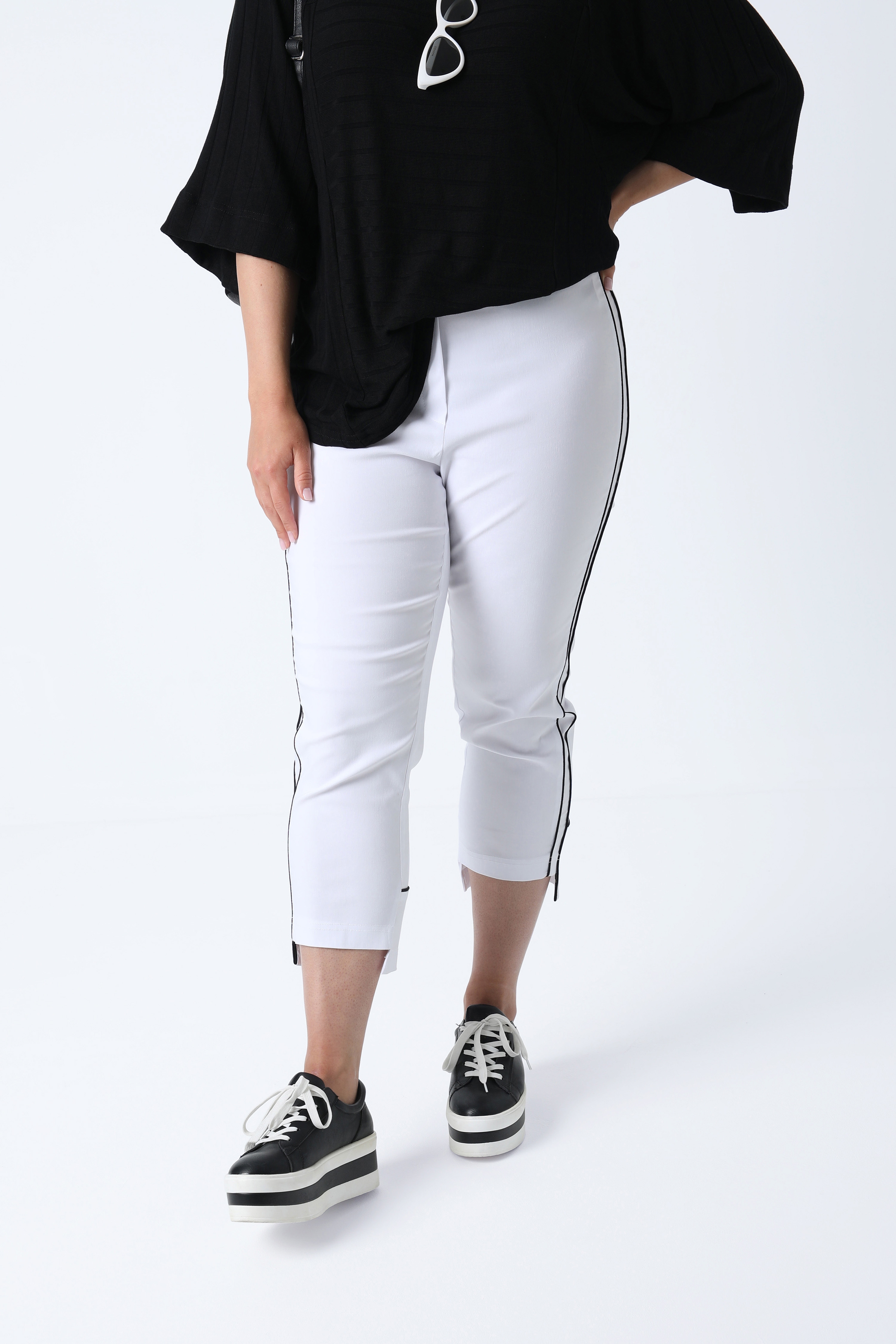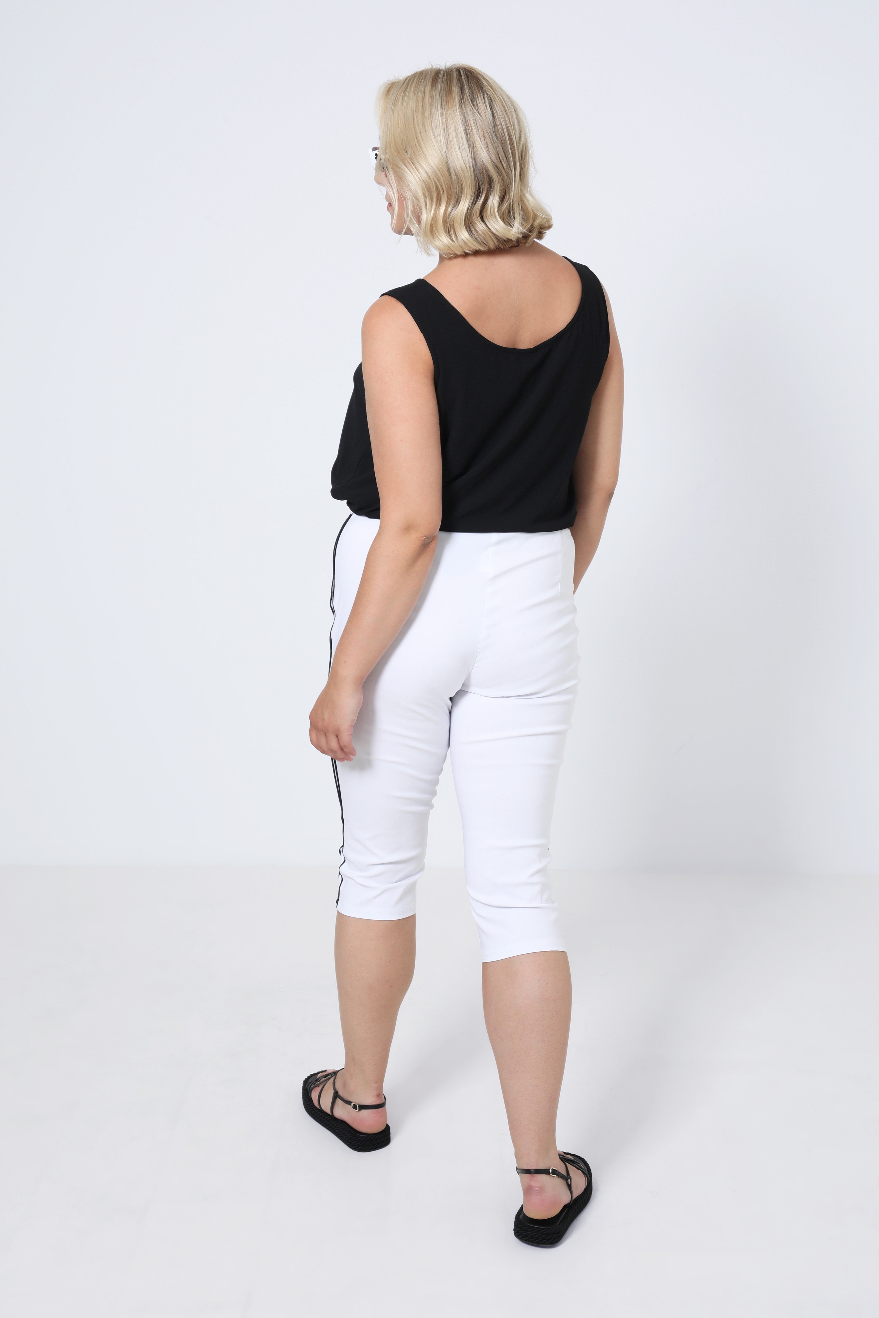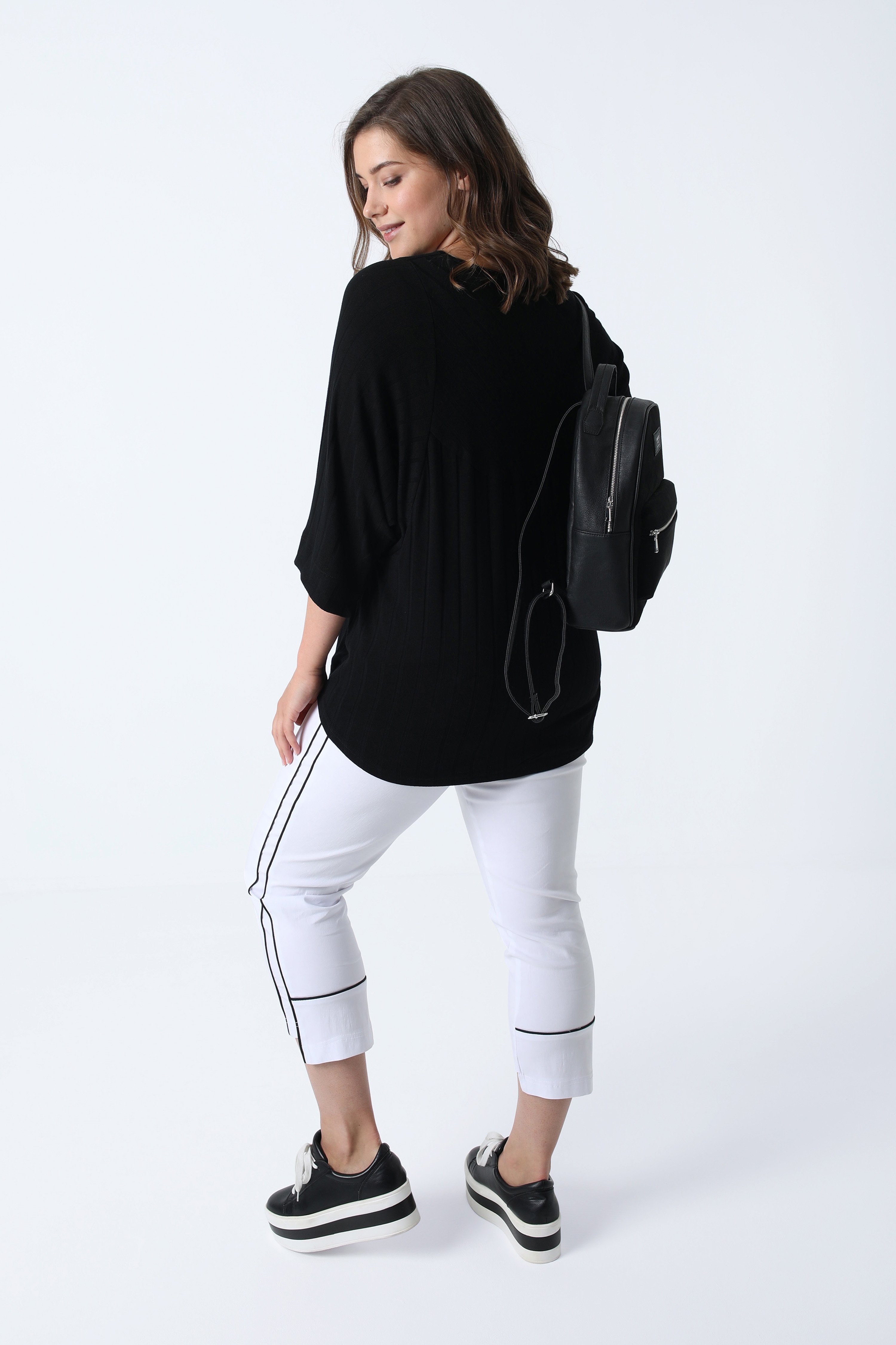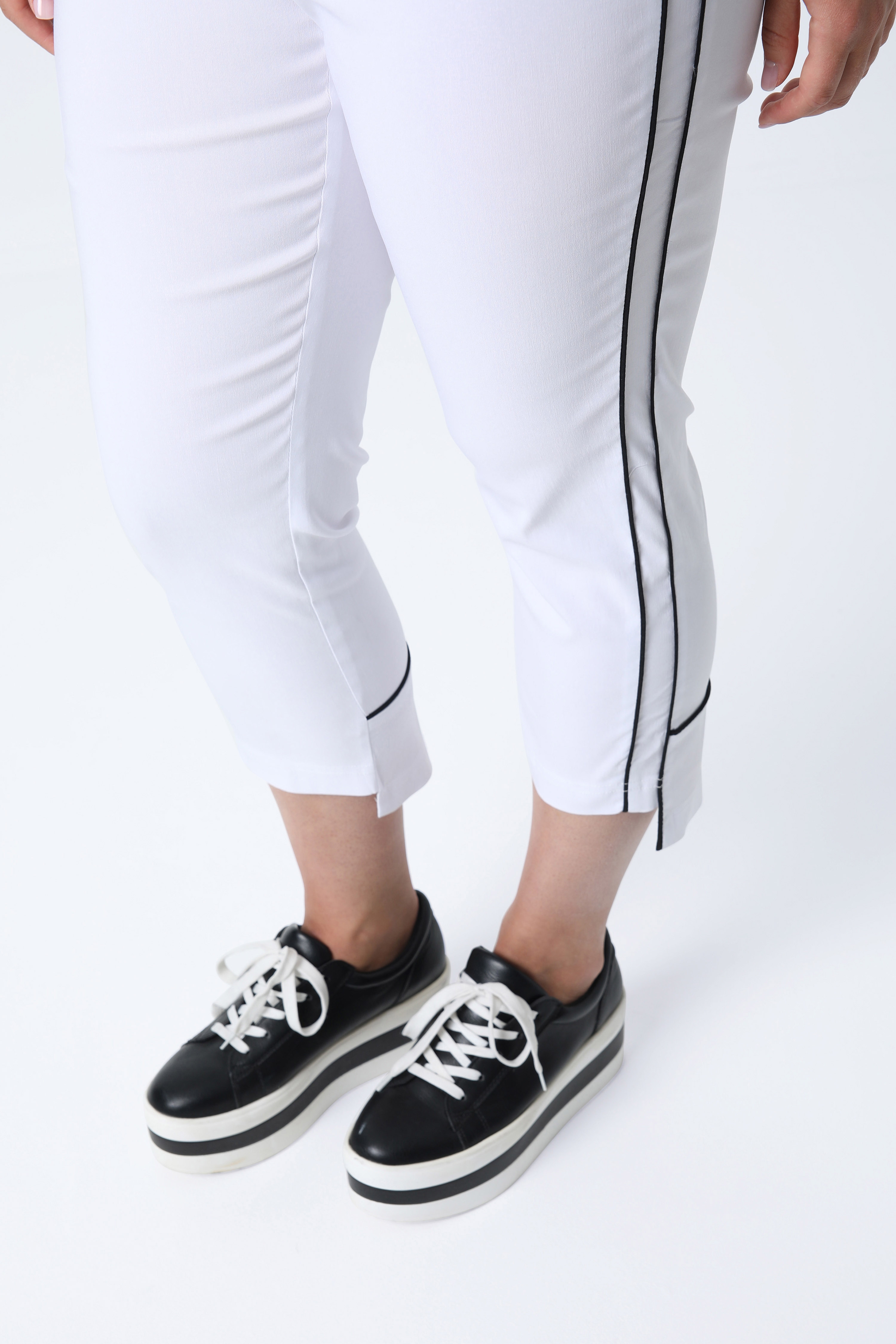• On the side is a cutout bordered on both sides by contrasting black piping.