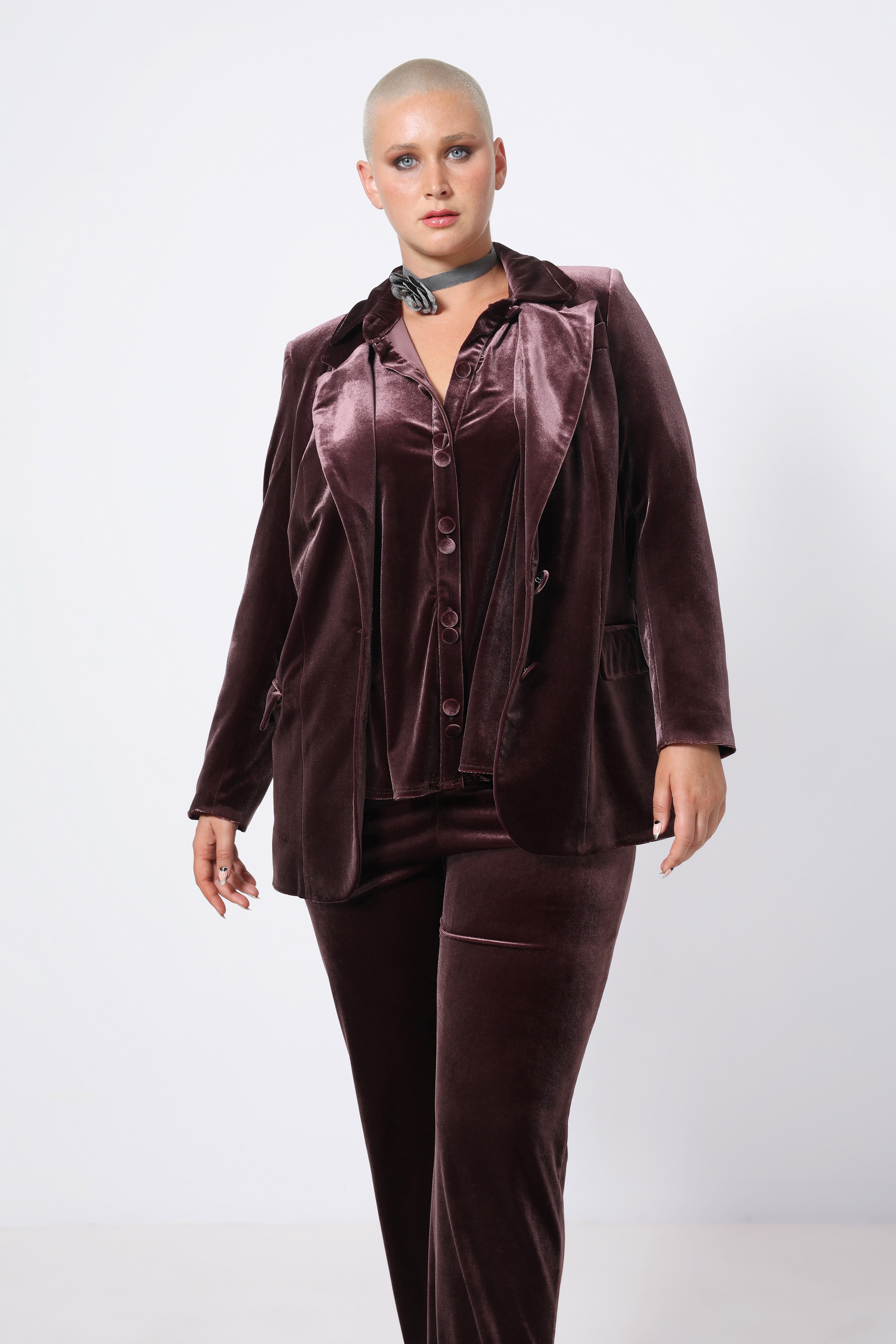 • Velvet tailored jacket.