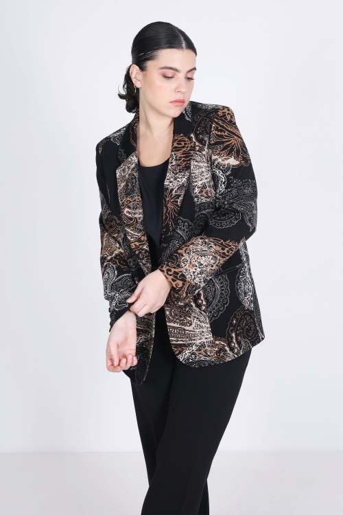 Assert your style with this leopard print suede jacket, an iconic piece that combines character and refinement. Made from a soft and supple fabric, it offers absolute comfort while shaping the silhouette. Its shirt collar and tone-on-tone button closure add a chic and contemporary touch. Easy to match, it enhances both black trousers and a pencil skirt...