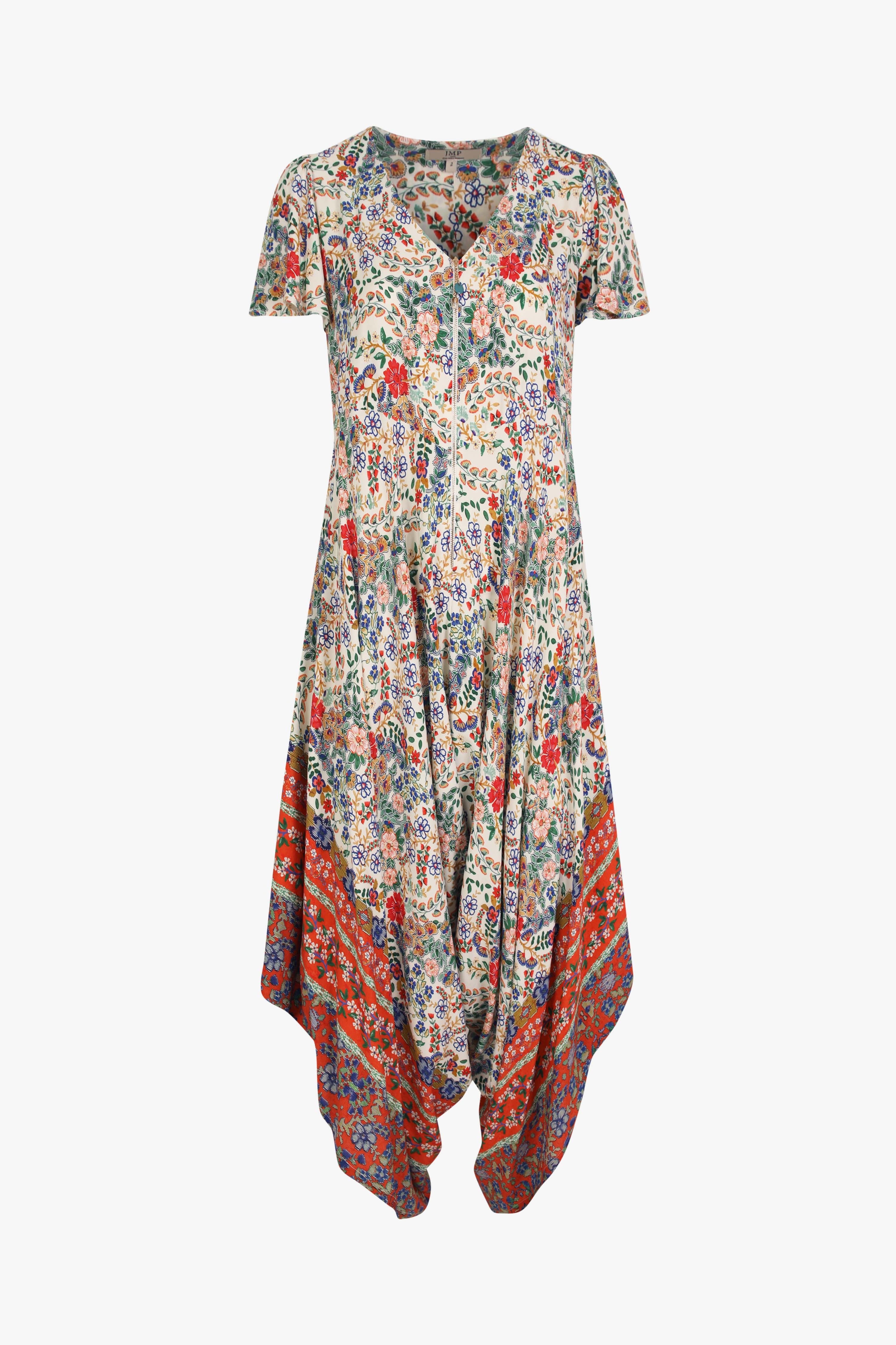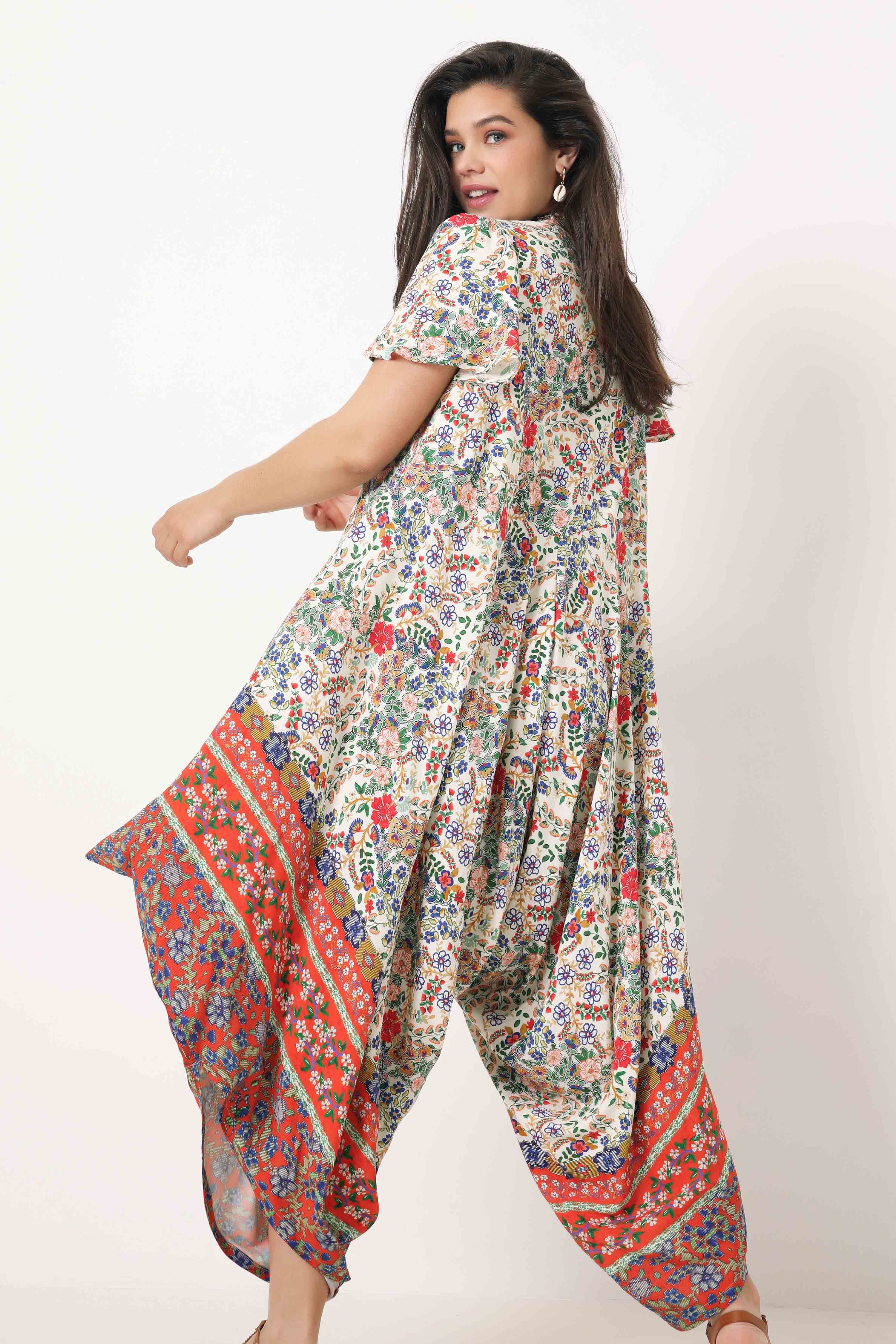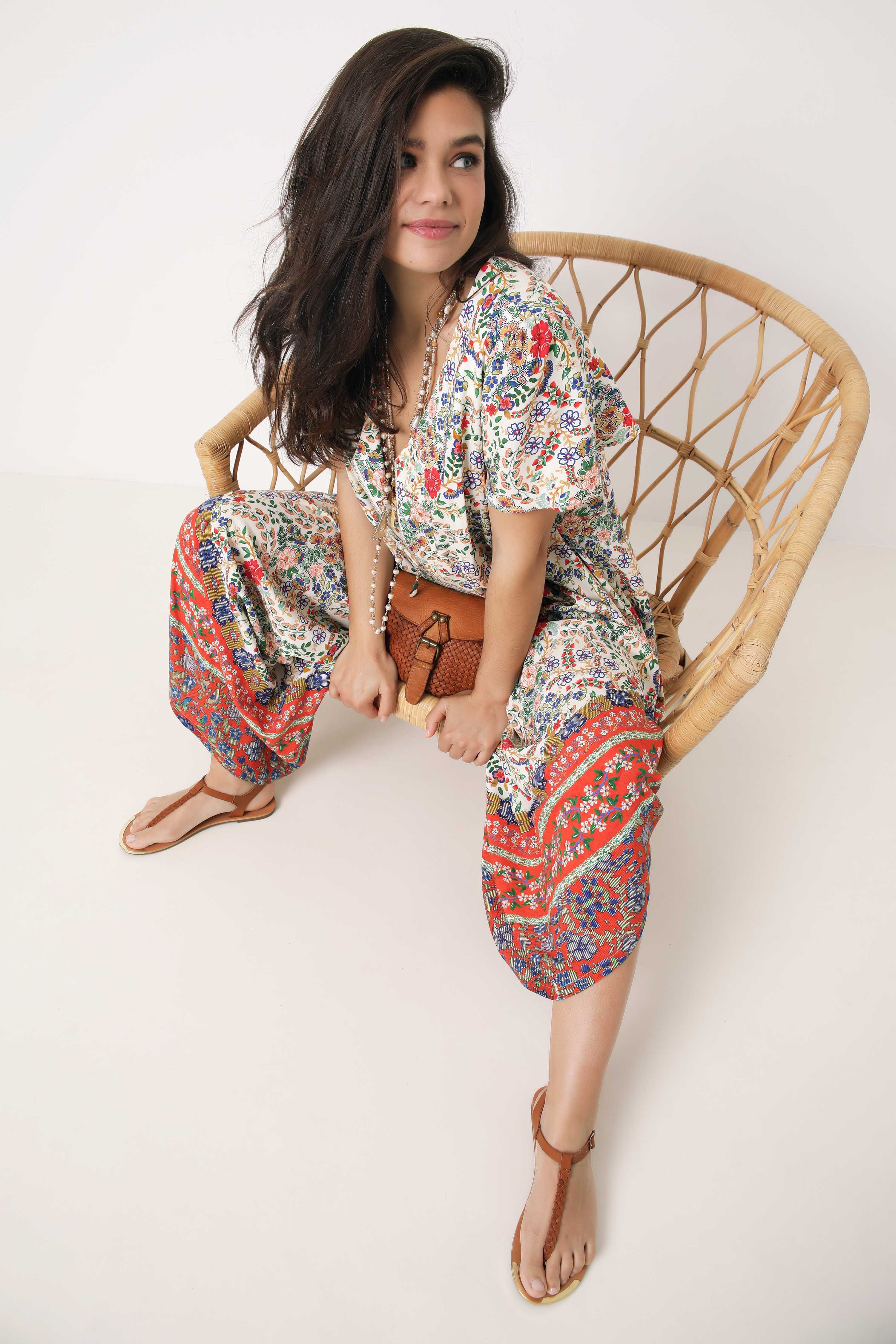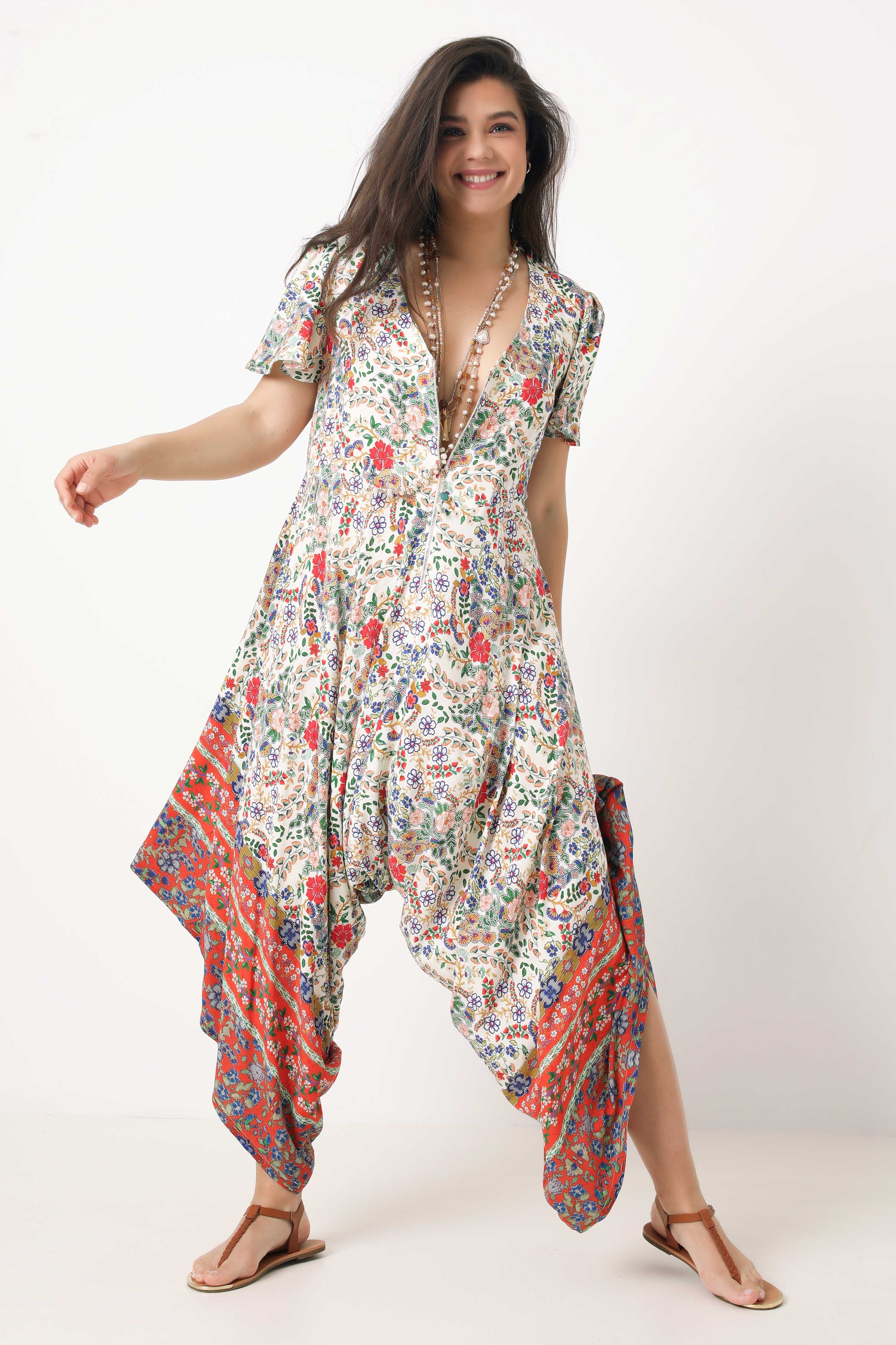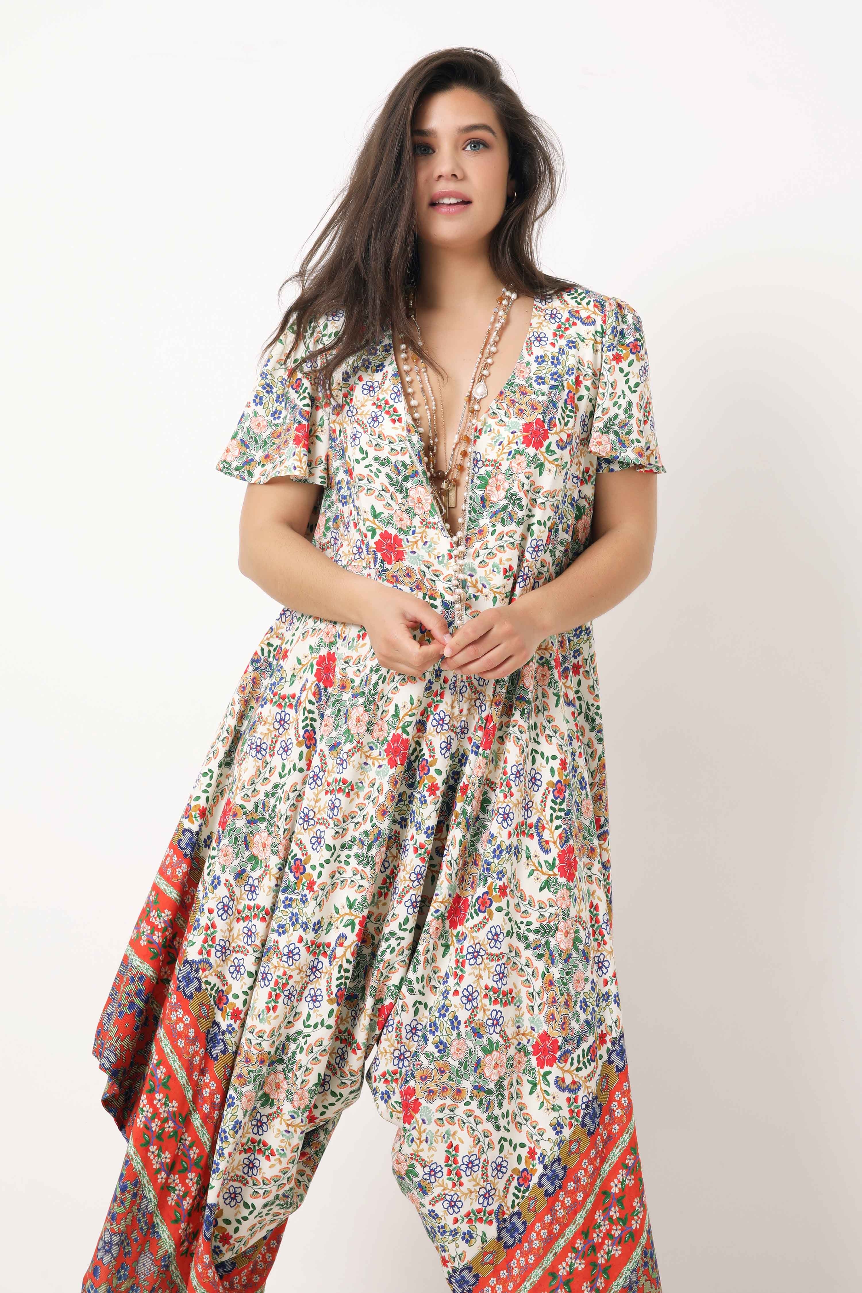 • Fluid jumpsuit with a central zip to adjust the neckline.