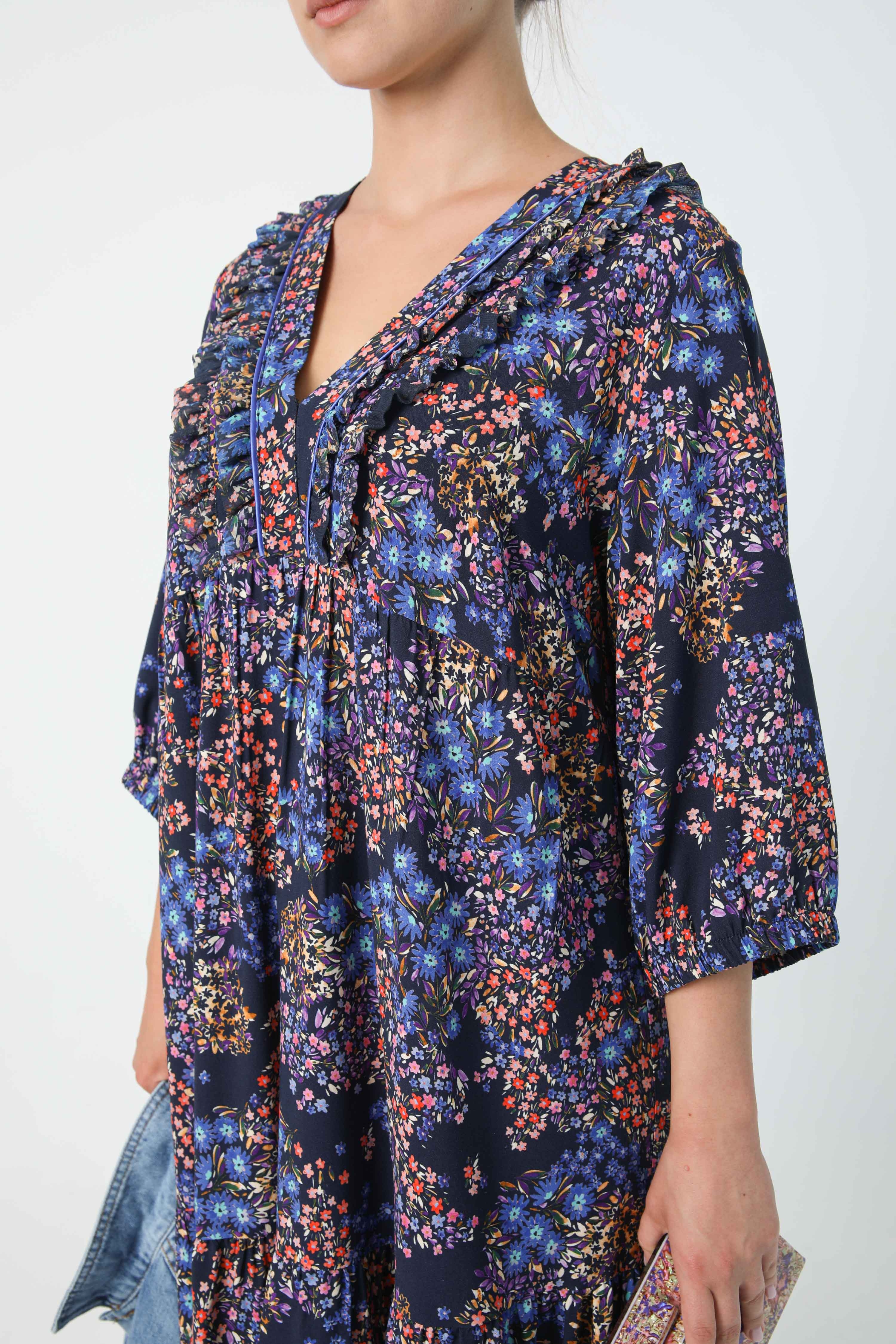 • Double small ruffle at the neckline.