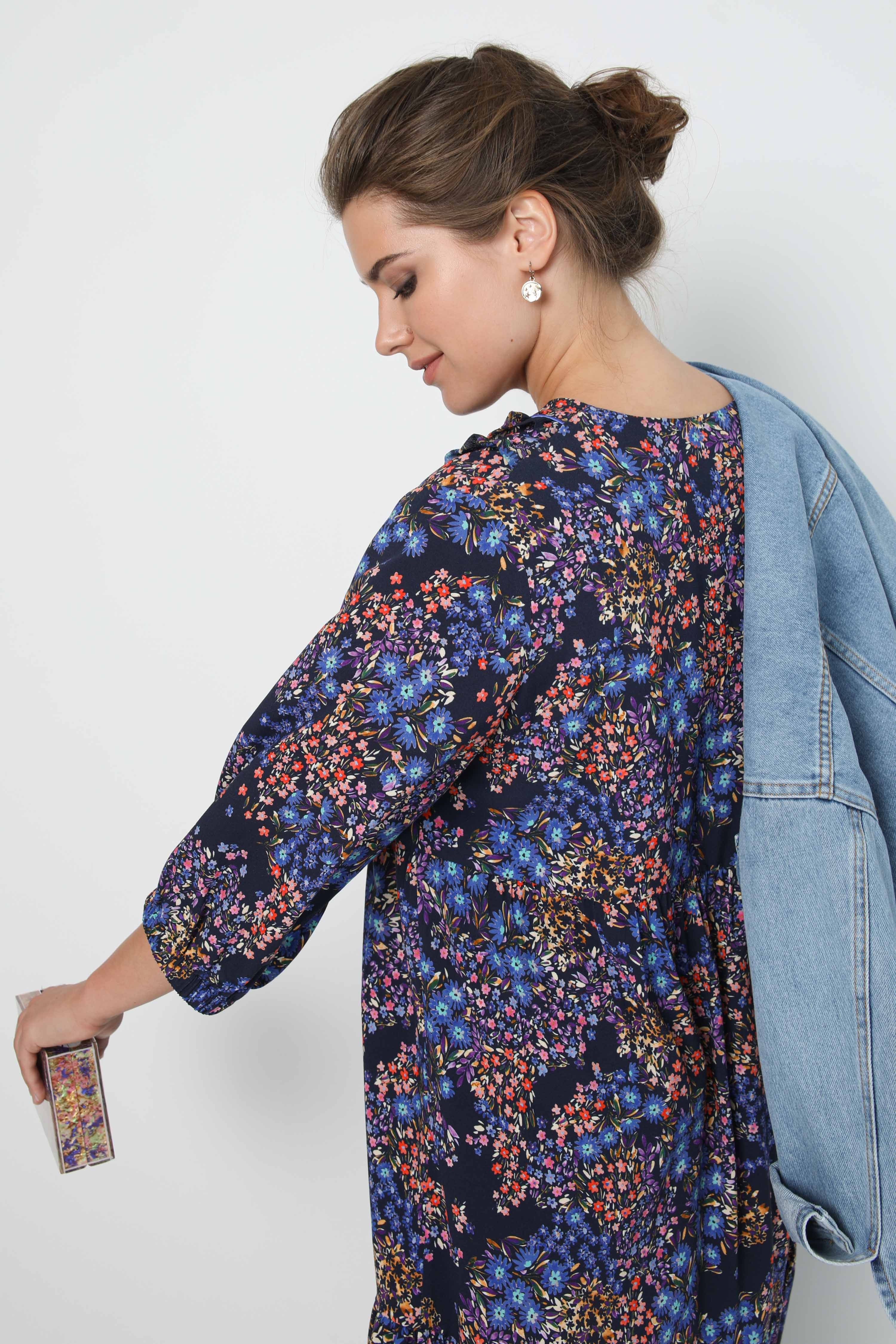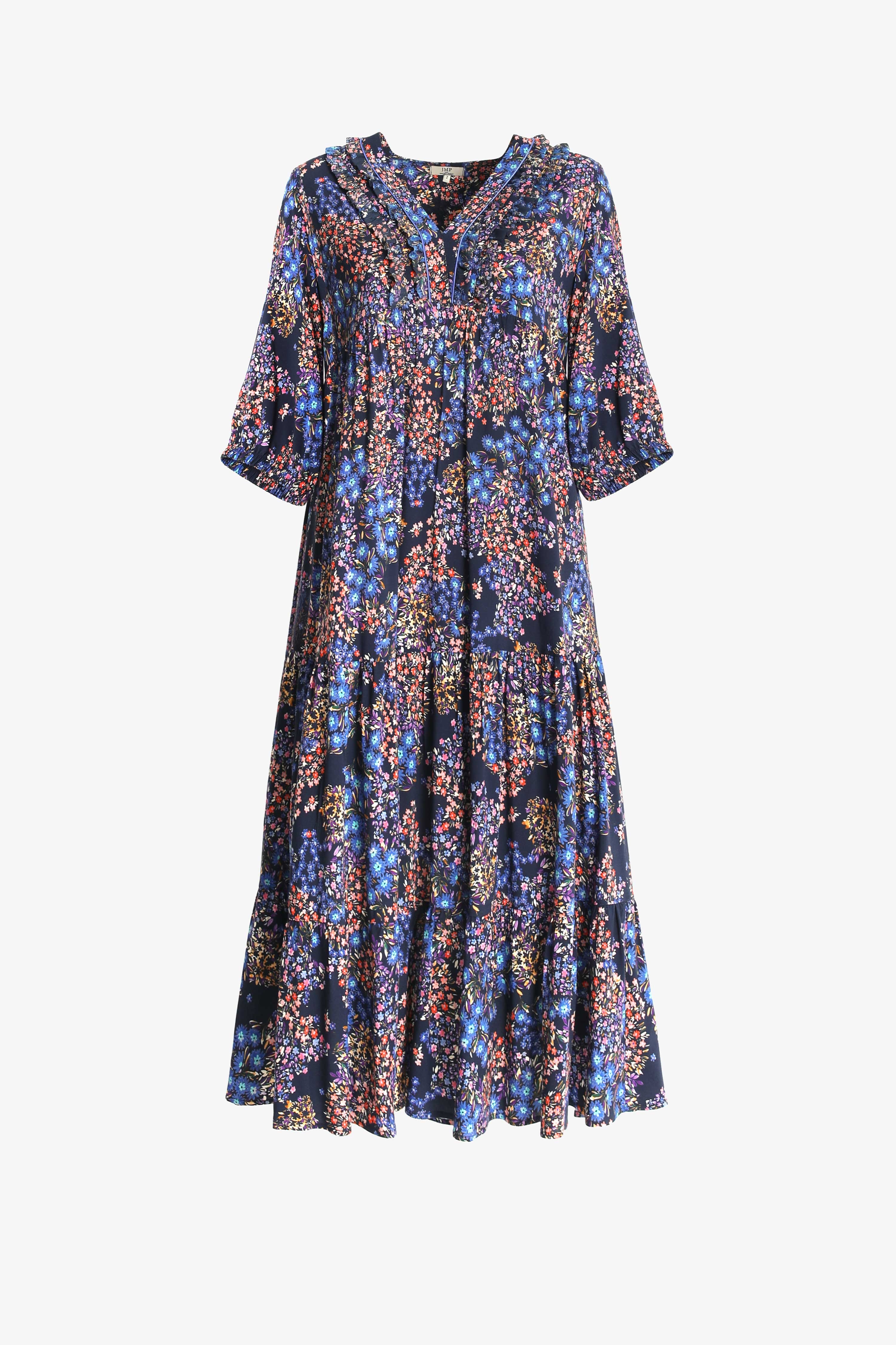 Bohemian long dress floral print eco-responsible fabric