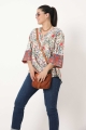 • Encolure en V avec large patte bordée d'un galon ajouré.