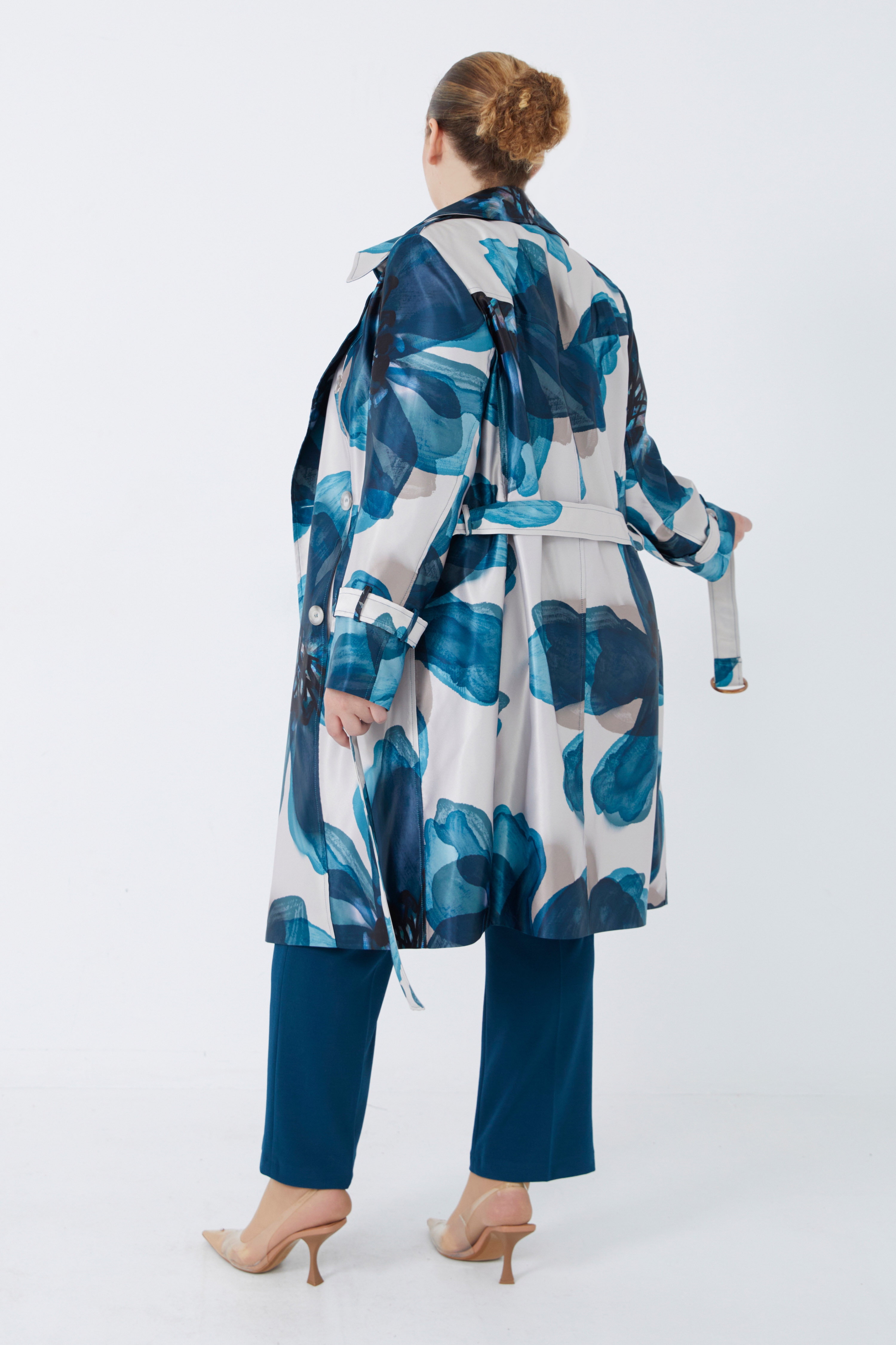 • Trench effet satiné avec motif grande fleur.