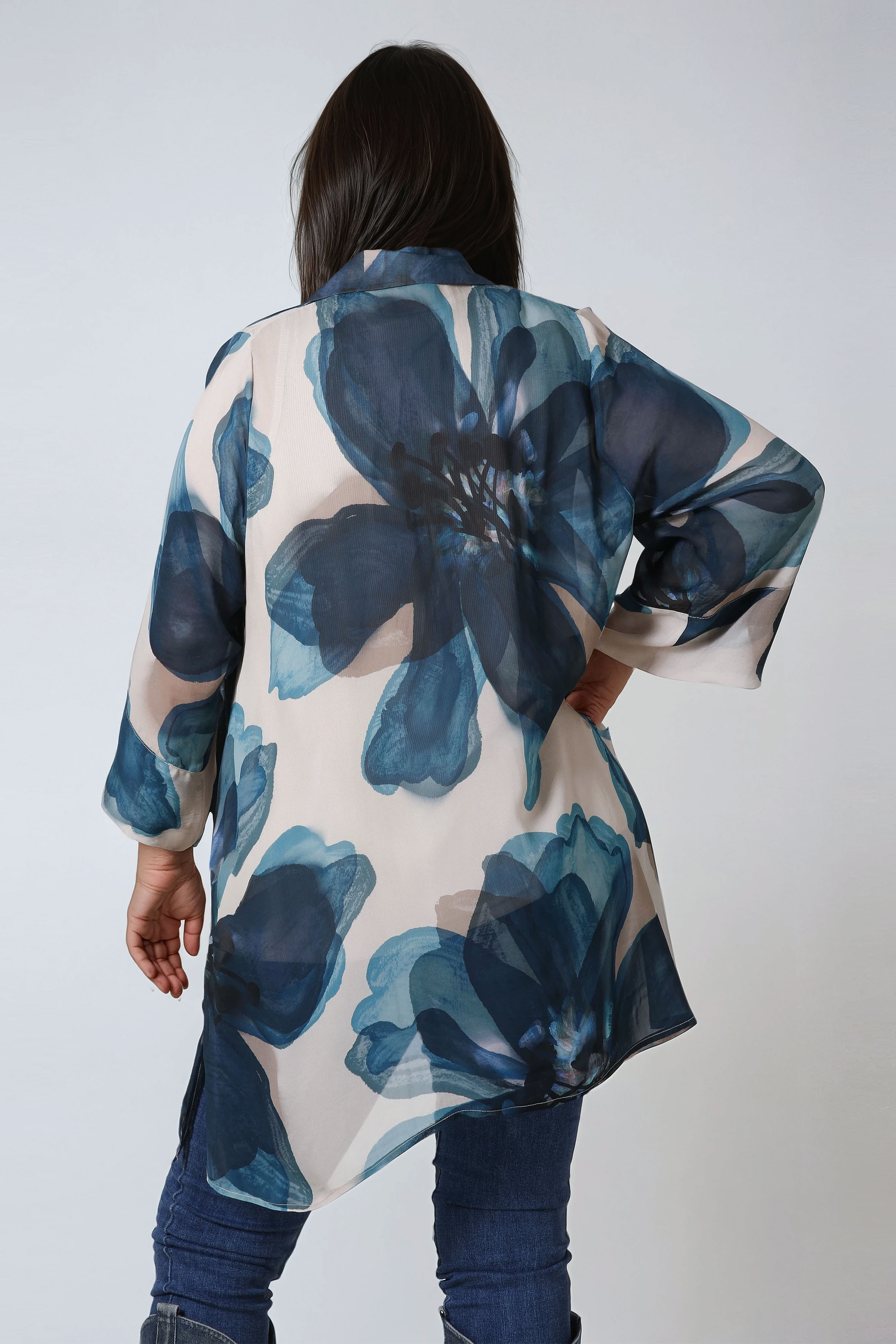 • Tunique en voile imprimé motif grande fleur.