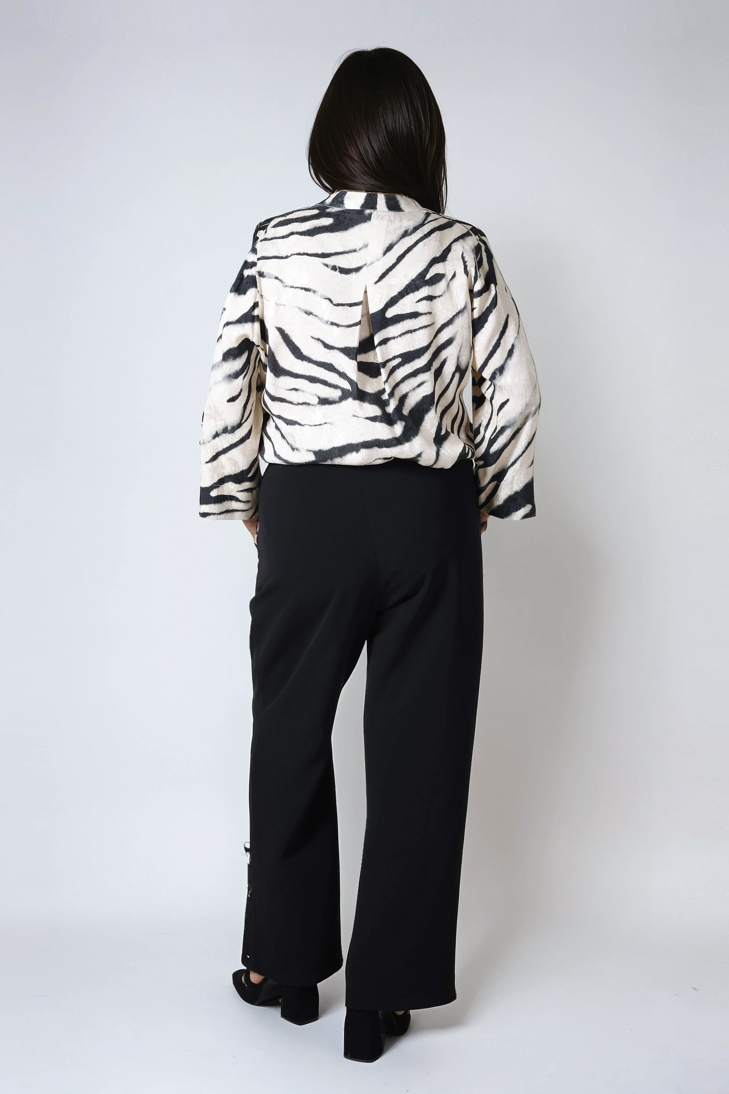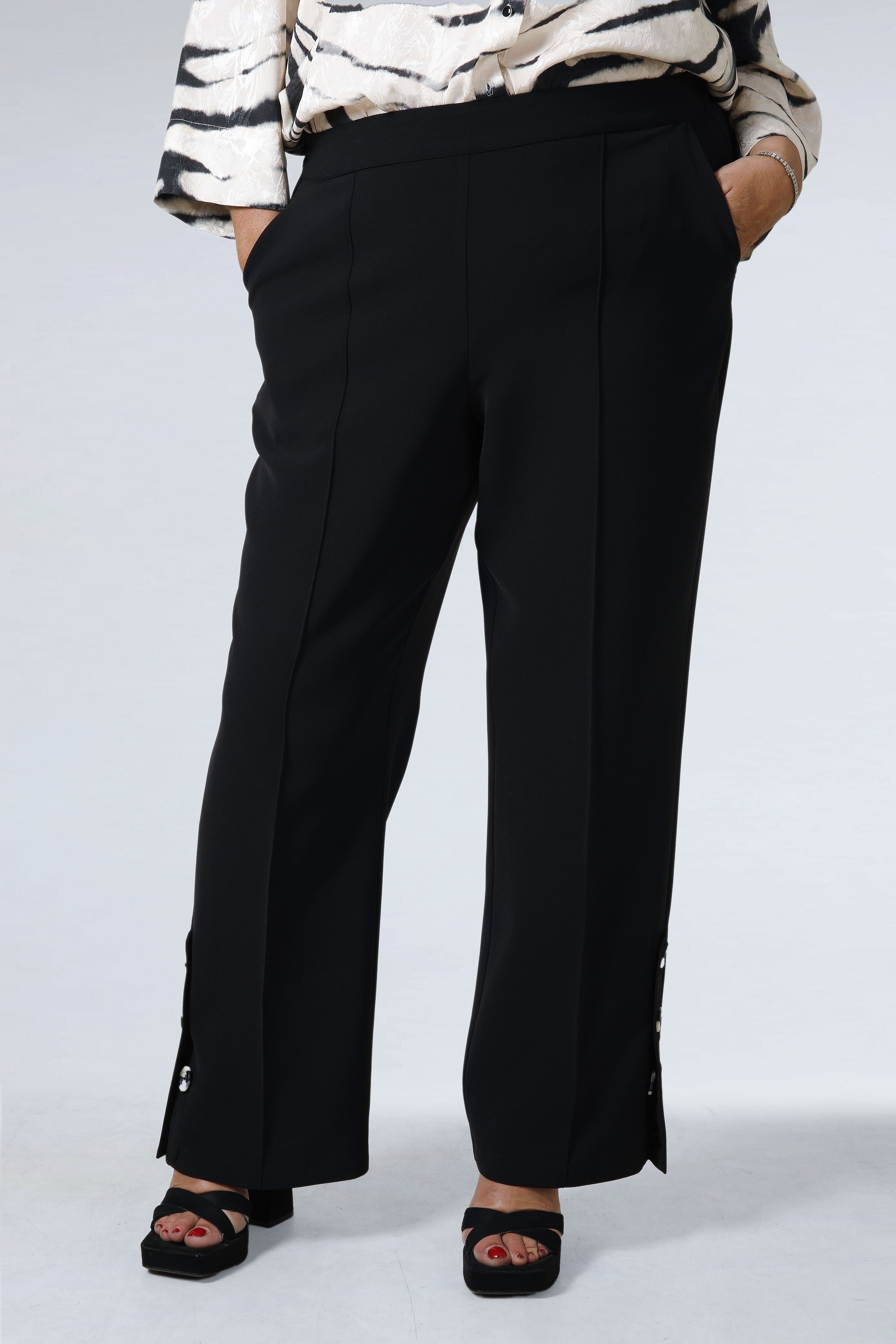 Pantalon tailleur uni avec une patte fantaisie