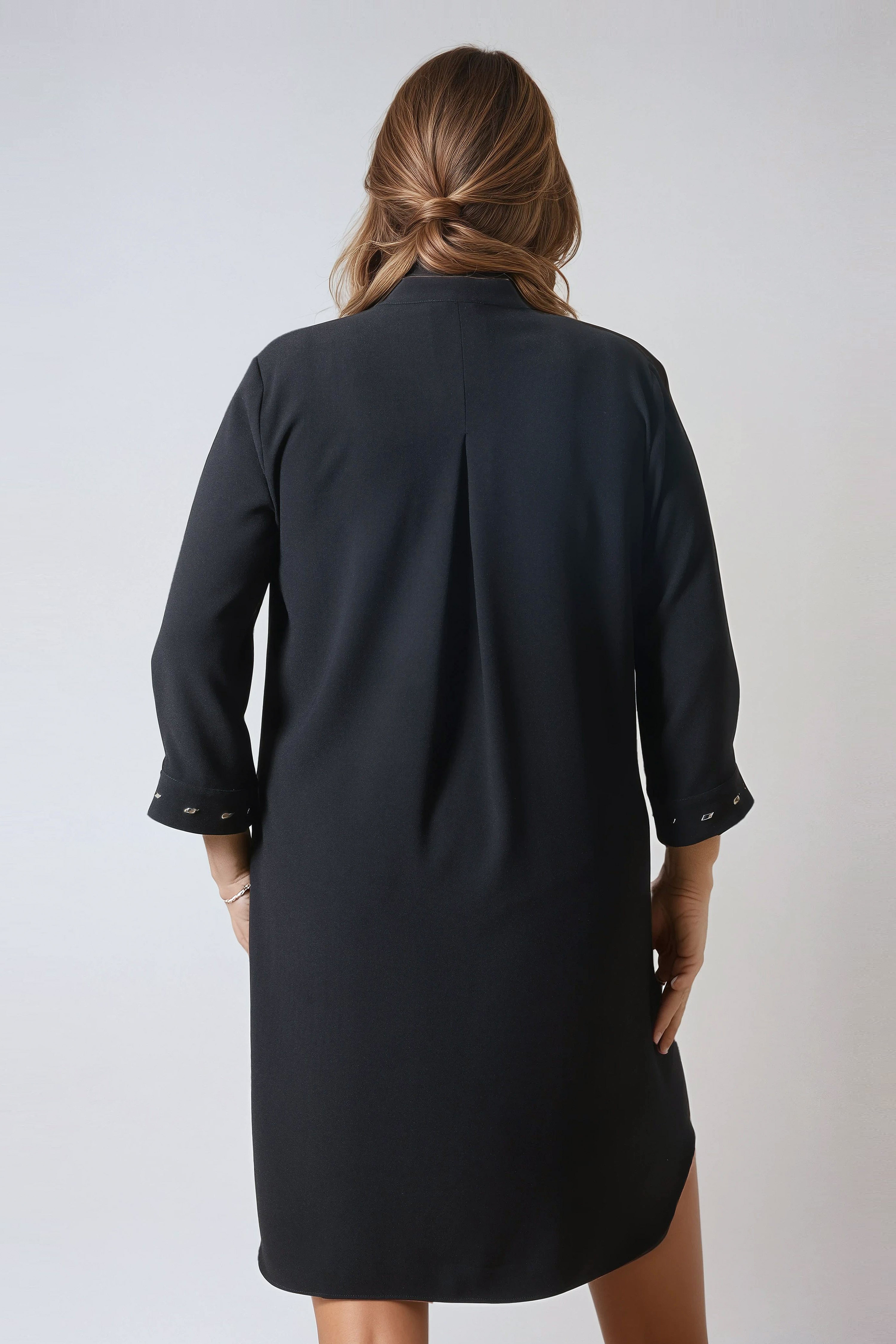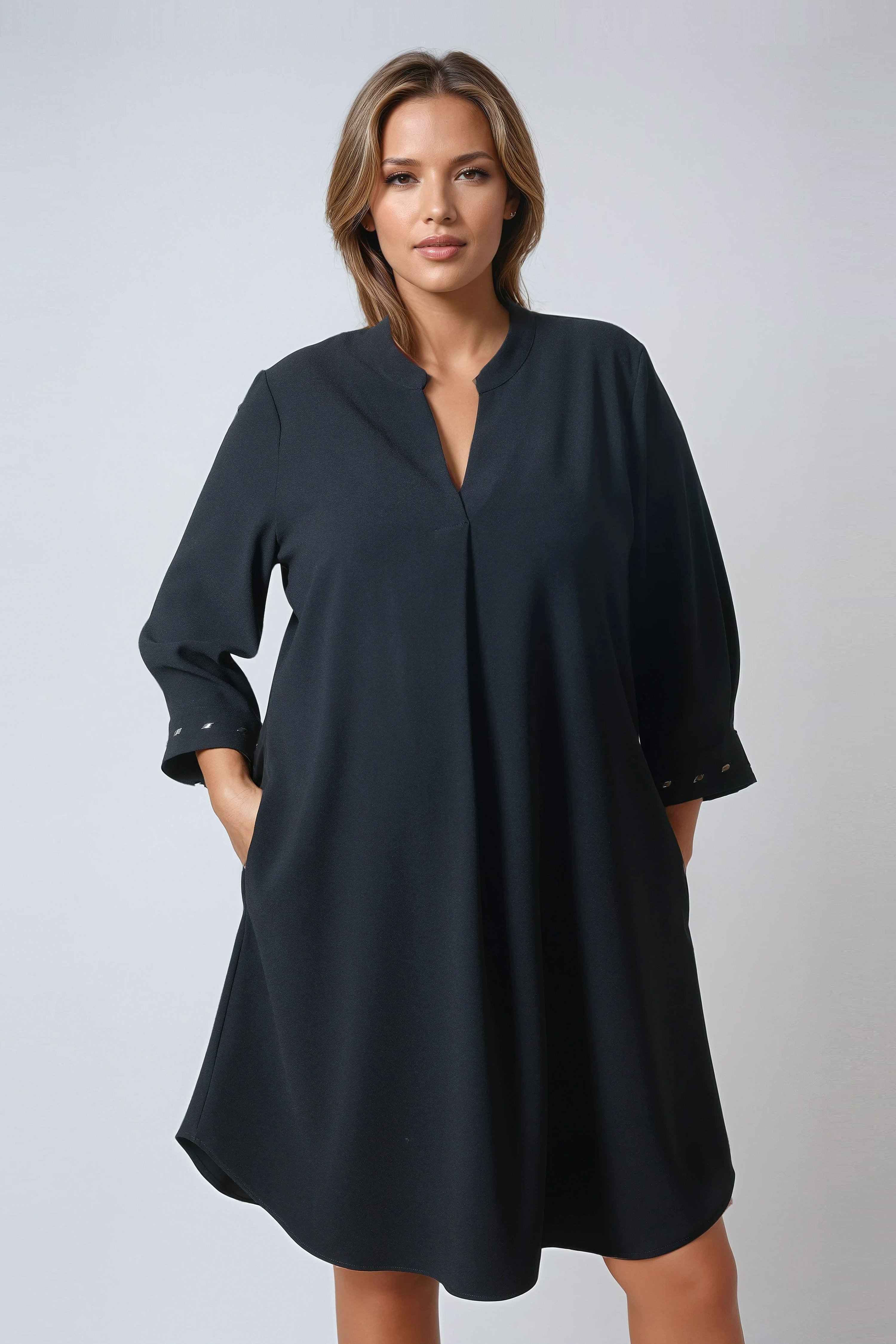 Robe droite unie avec poignet cloutes crepe haut de gamme