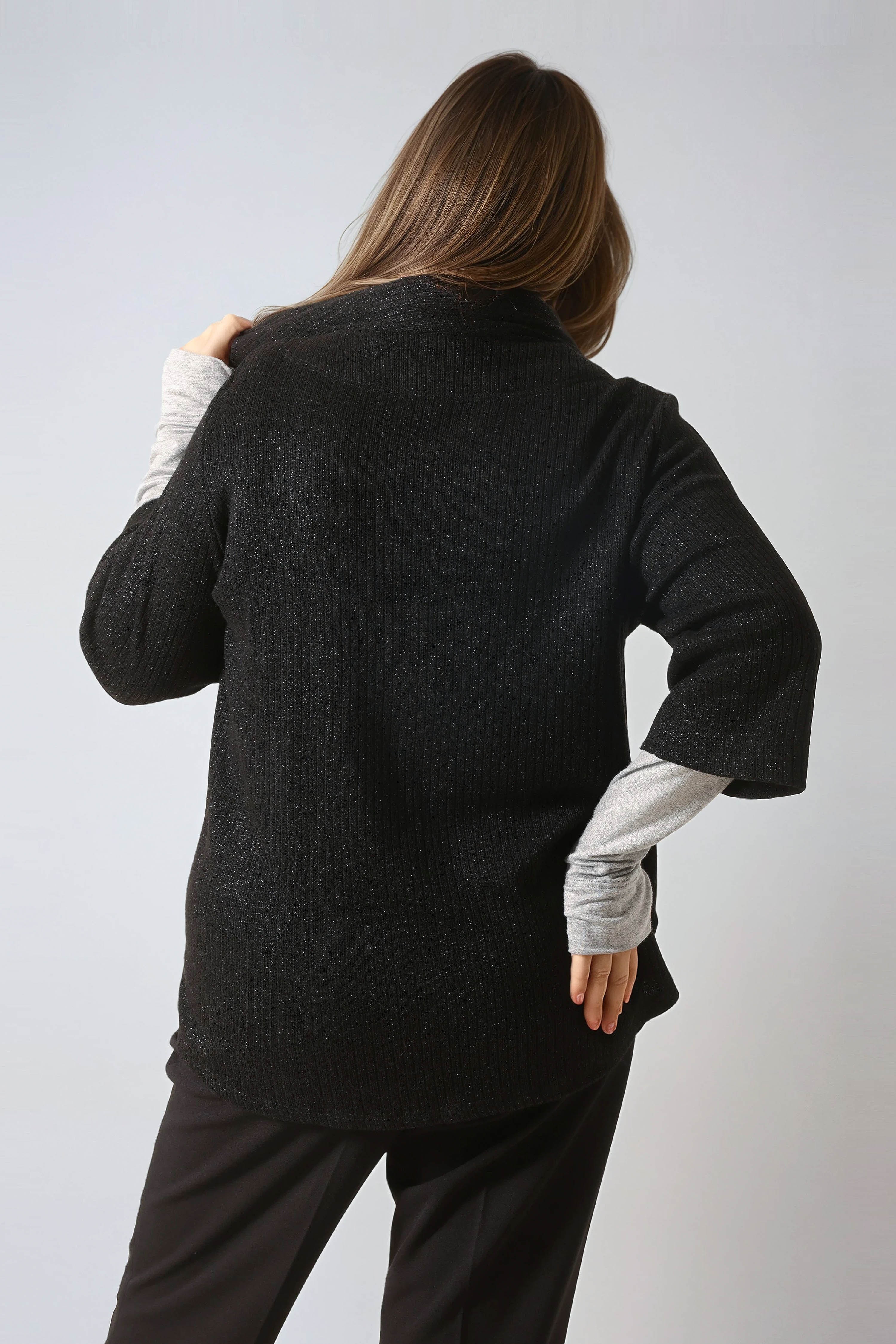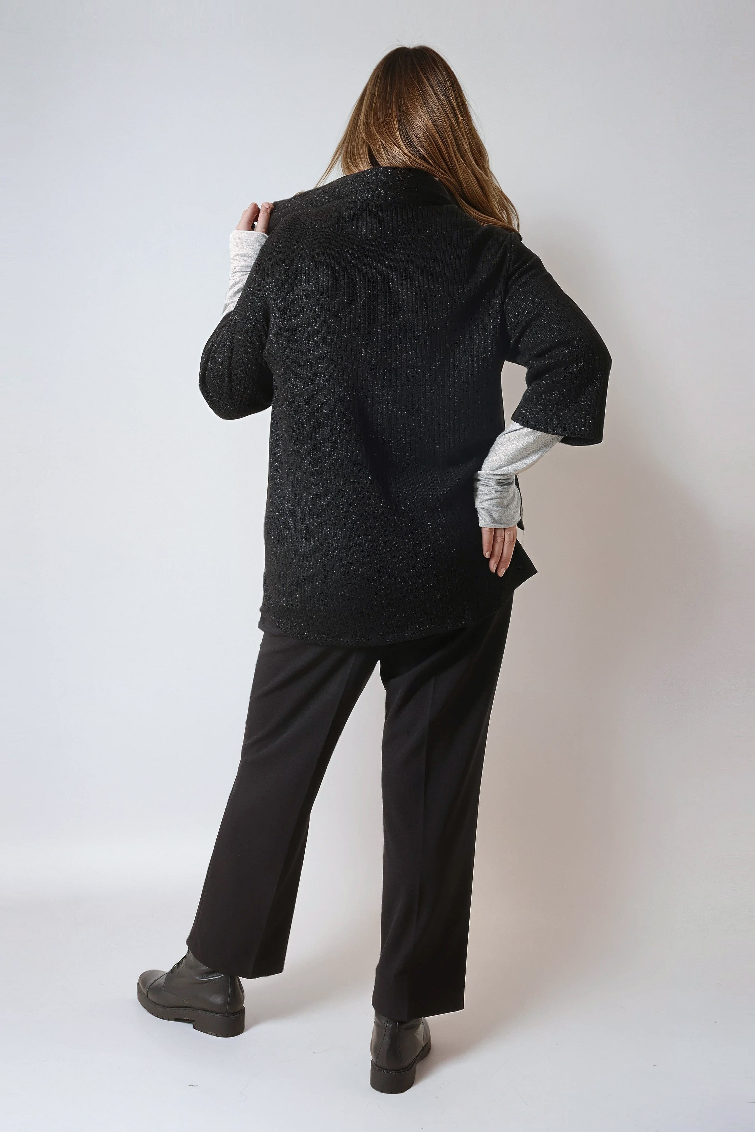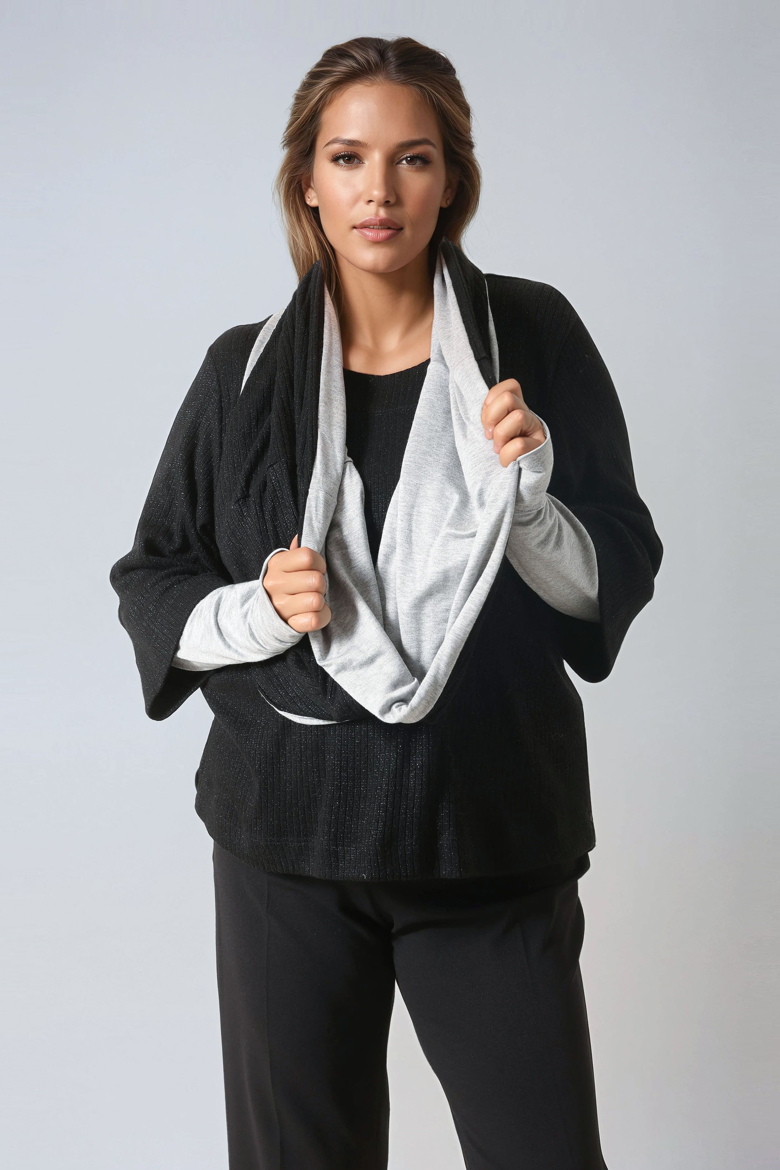 - Col écharpe amovible en maille lurex contrastante, qui se porte de différentes façons : enroulé, drapé ou retiré selon vos envies.
