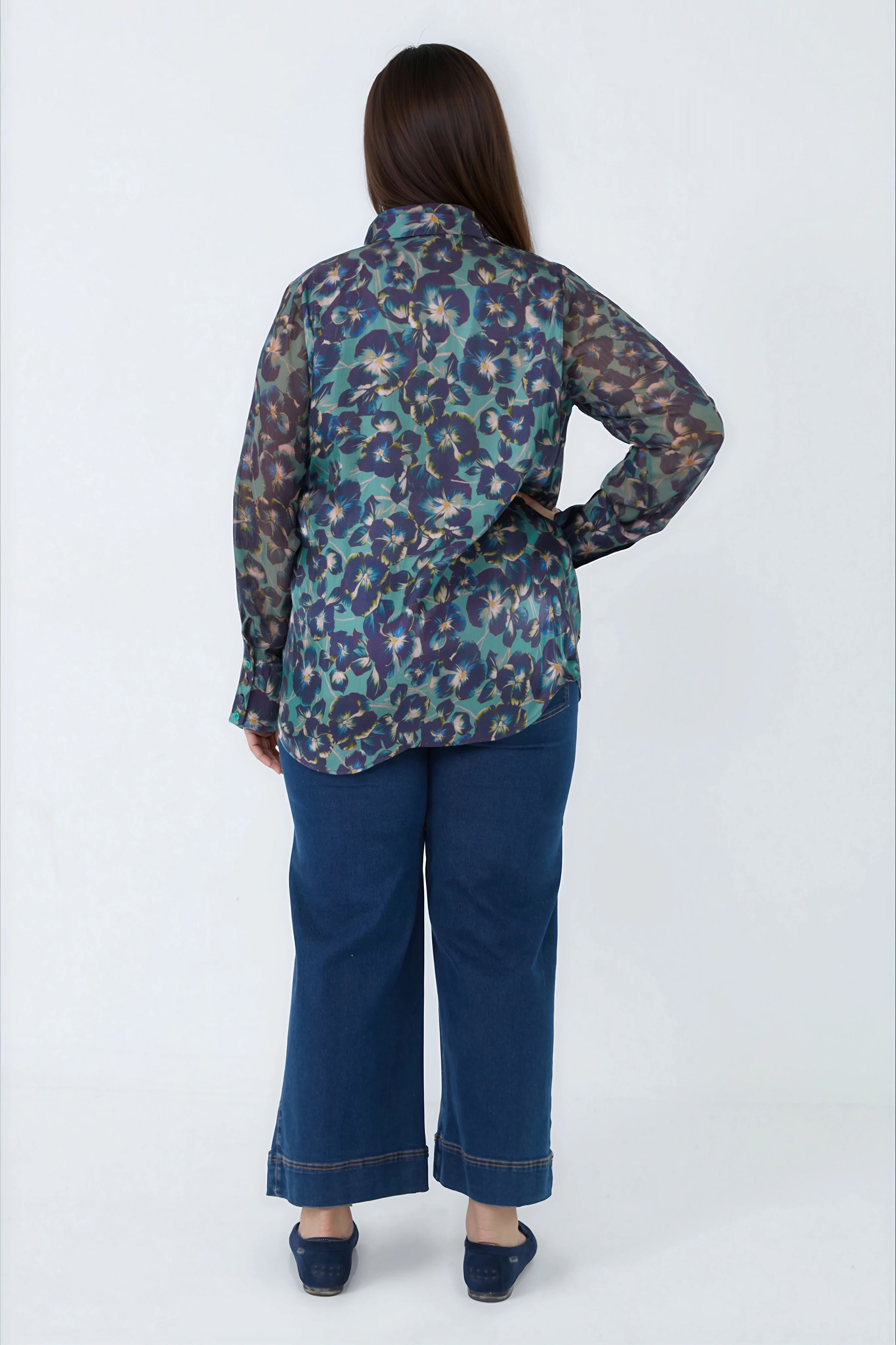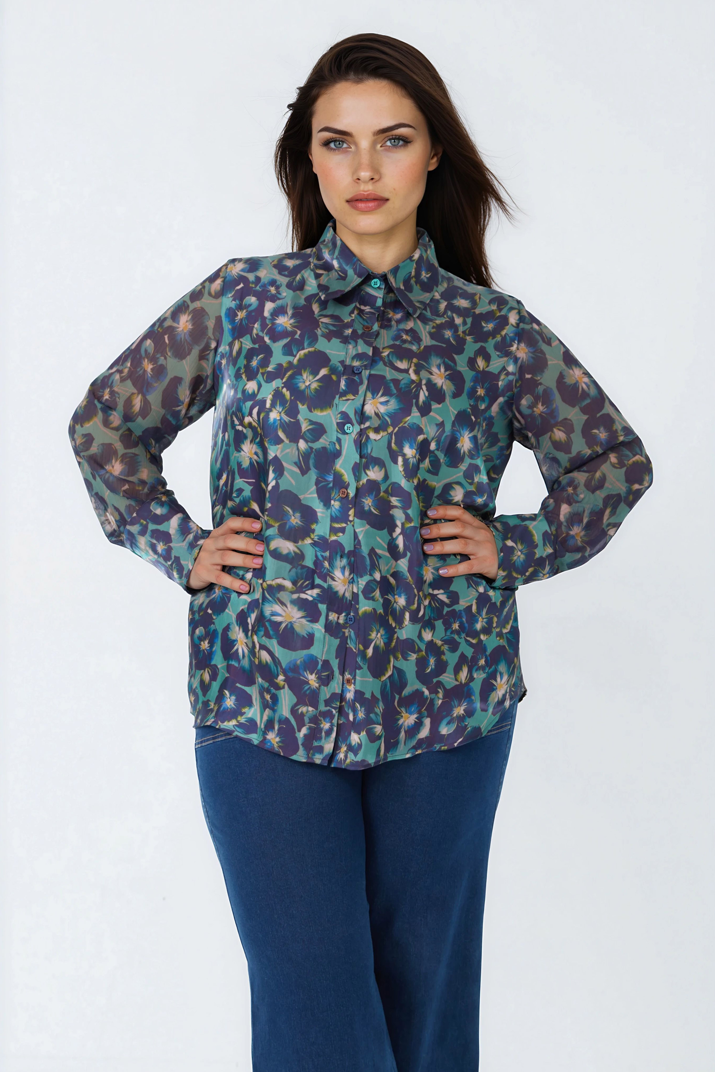 Conçue pour sublimer les courbes, cette chemise se distingue par sa coupe droite confortable, son tissu doux et respirant, et son col chemise classique qui structure la tenue.