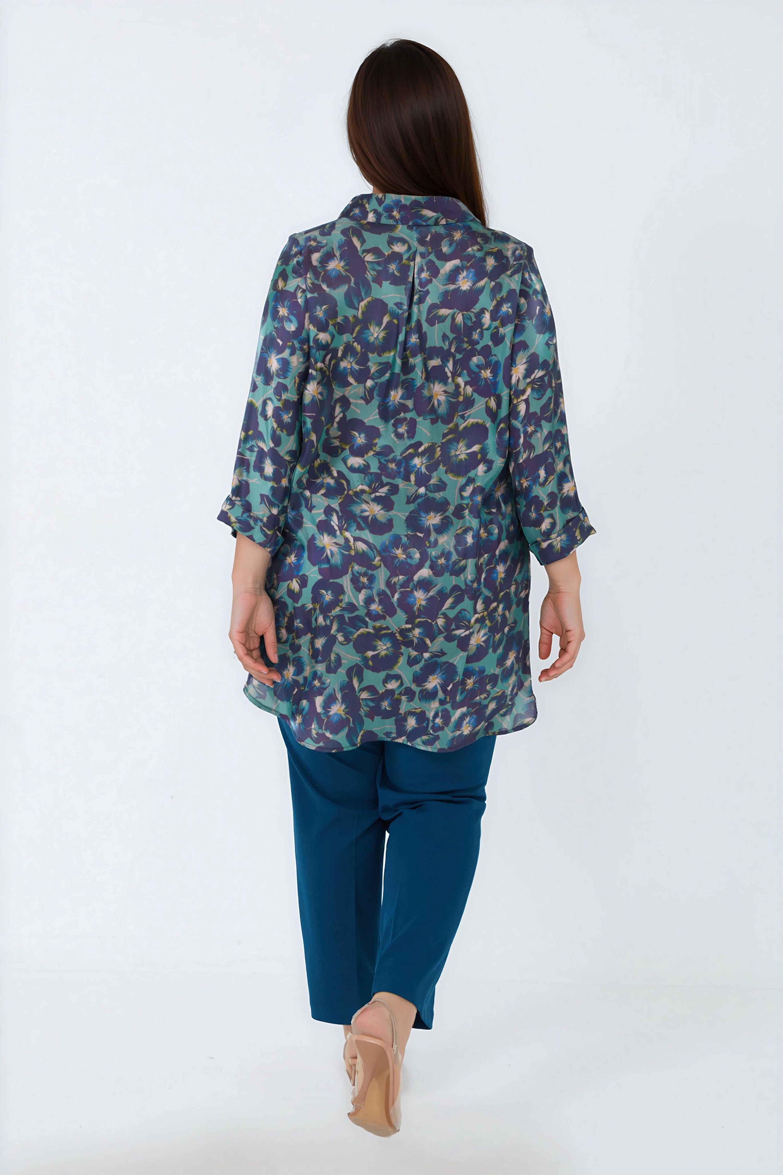 Chemise fluide en viscoseecovero imprime floral bleu-vert