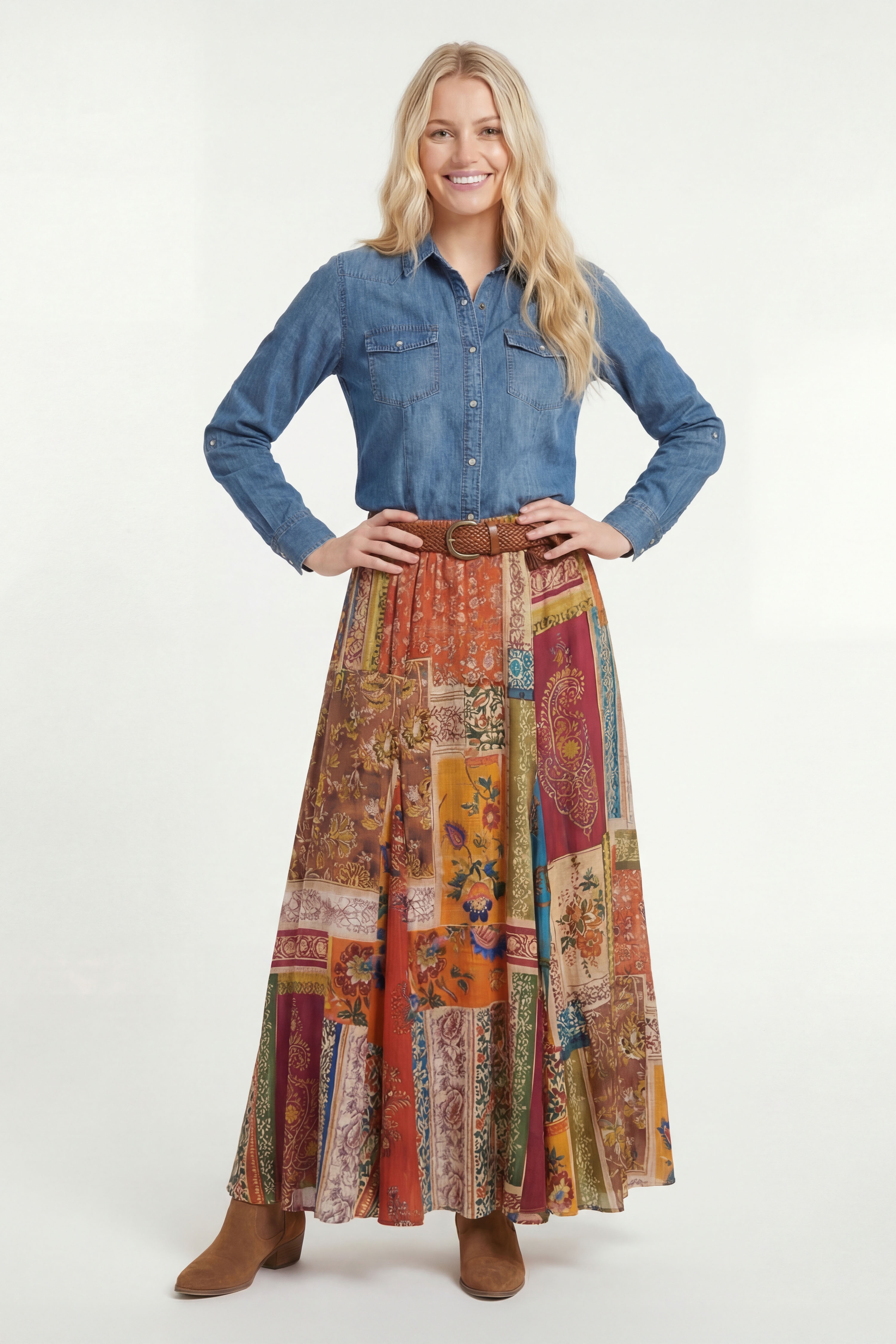 Portée avec une chemise en jean ou un pull uni, cette jupe devient une pièce forte du dressing, idéale pour un look à la fois féminin et décontracté.