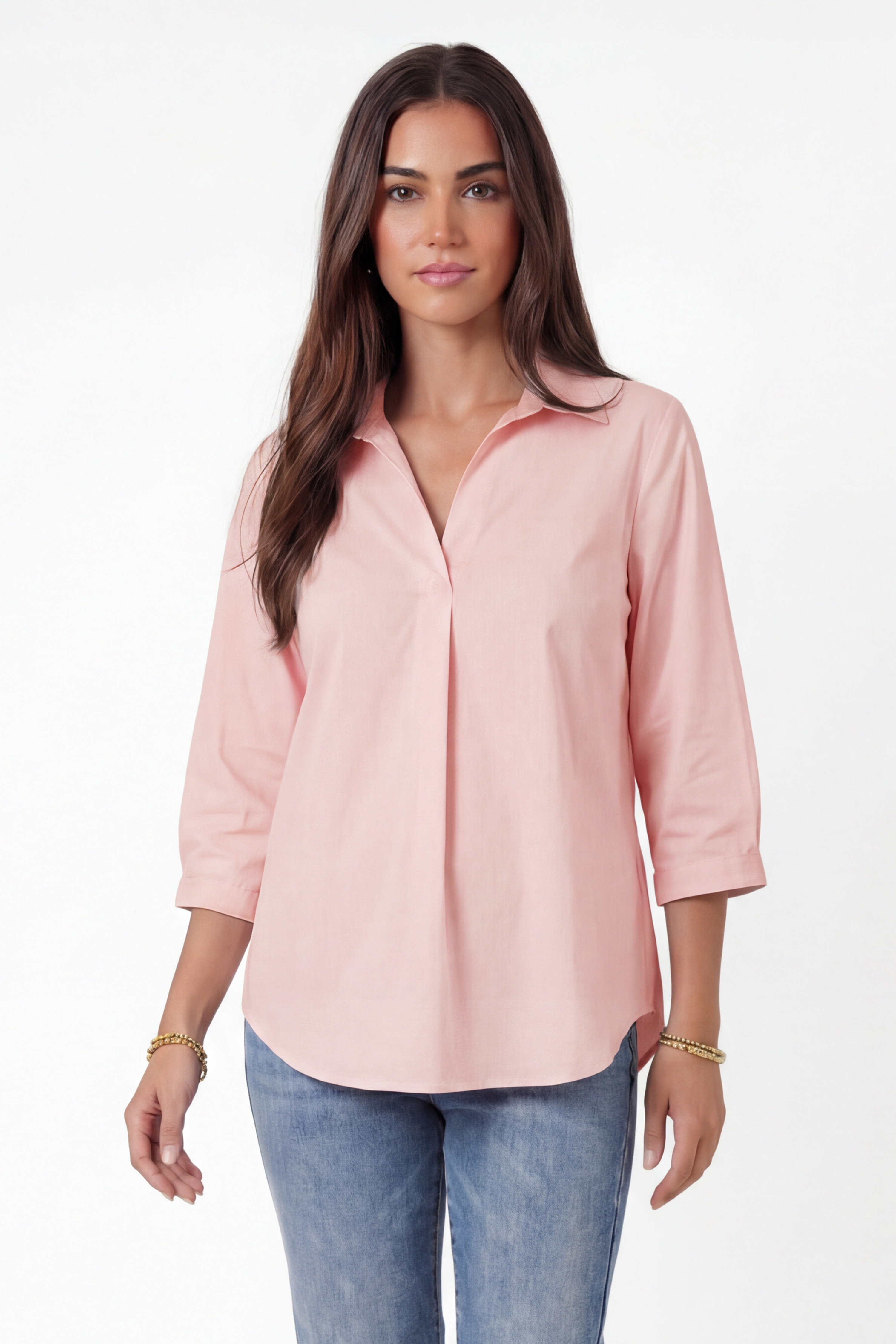 • Blouse en popeline unie.