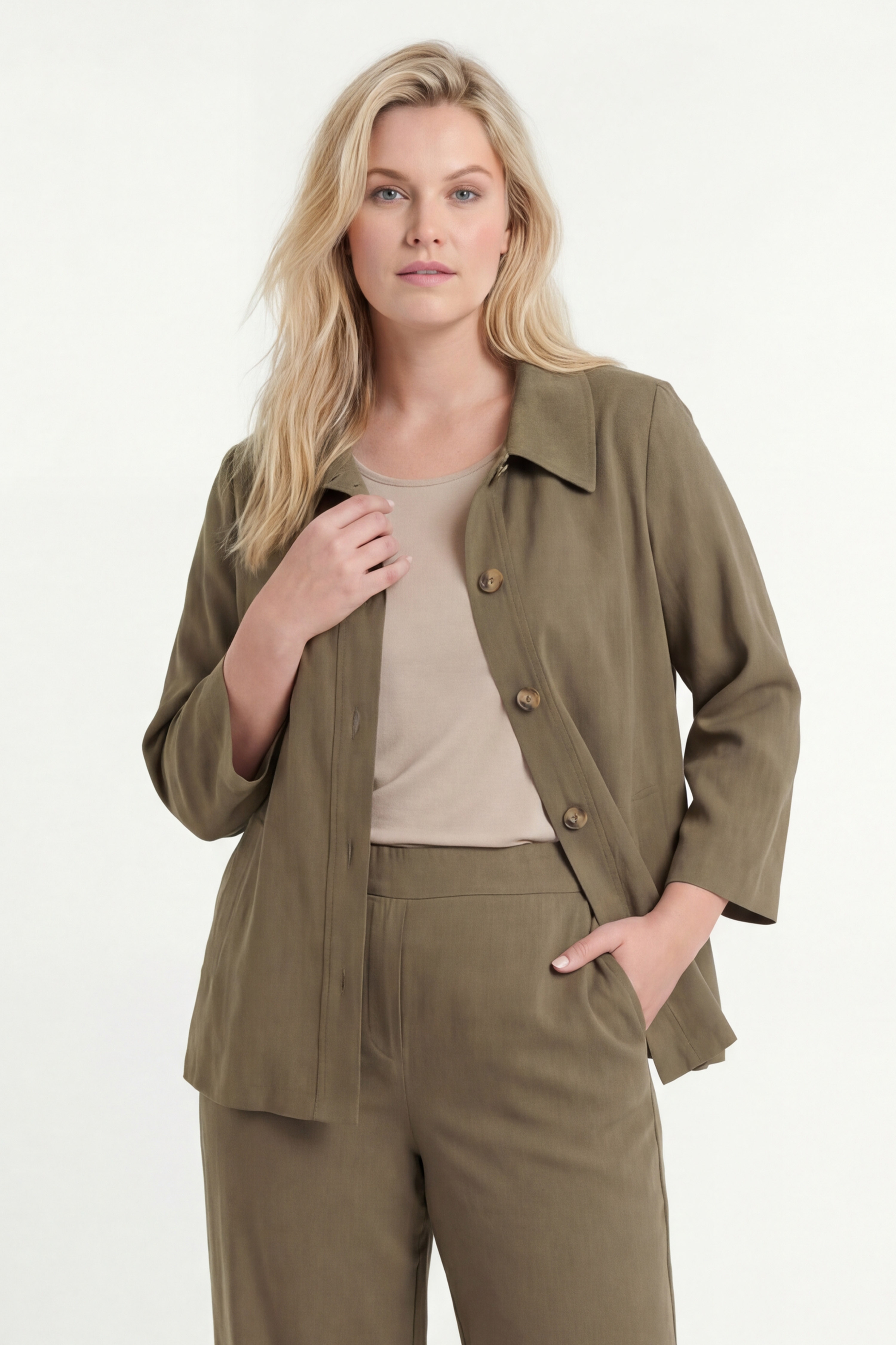 Cette veste fluide en 100 % lyocell est la pièce idéale pour apporter une touche de couleur et de légèreté à vos silhouettes du quotidien.