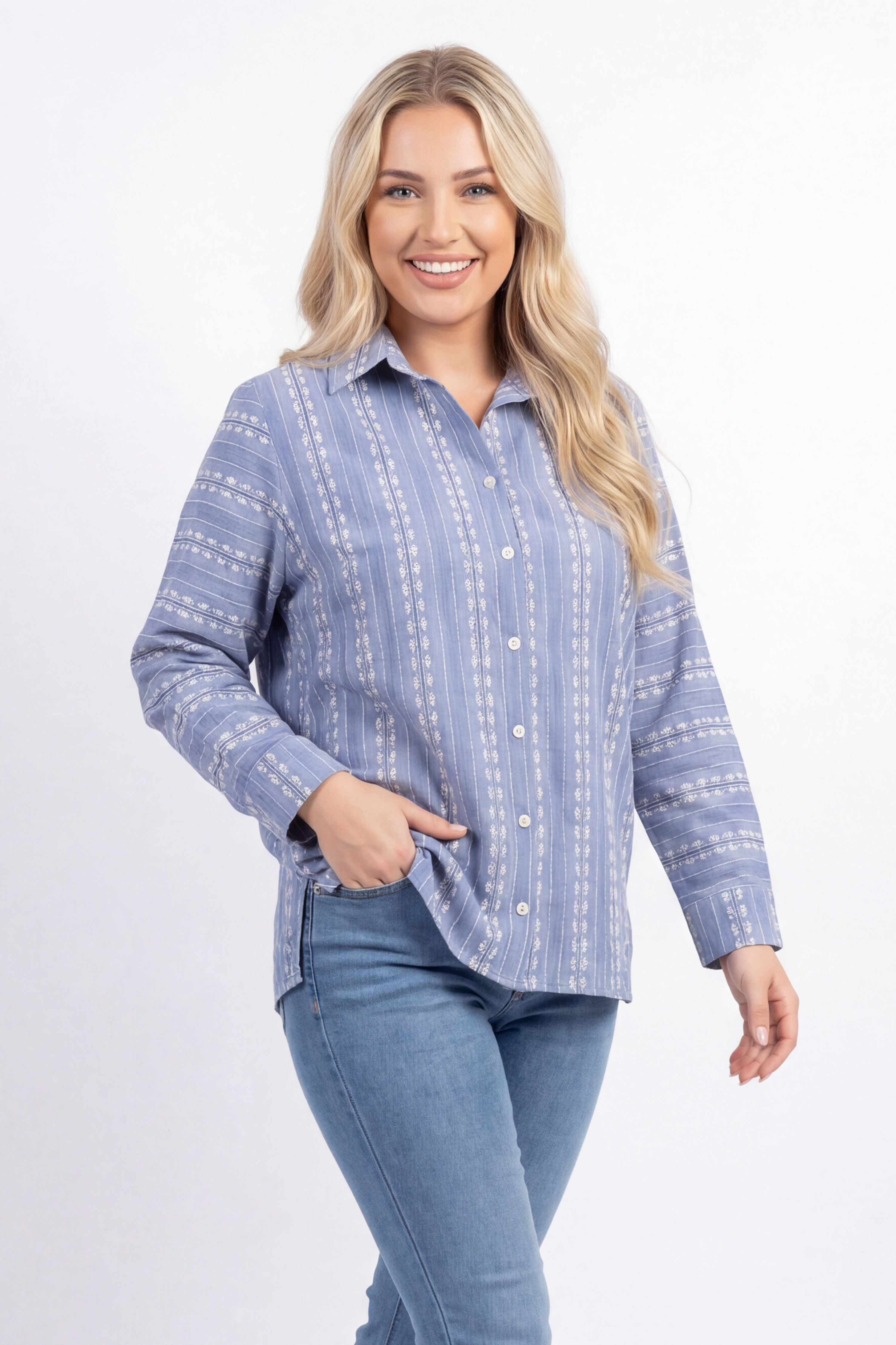 Laissez-vous séduire par cette chemise en coton brodé, une pièce essentielle du vestiaire féminin qui allie confort, élégance et féminité.