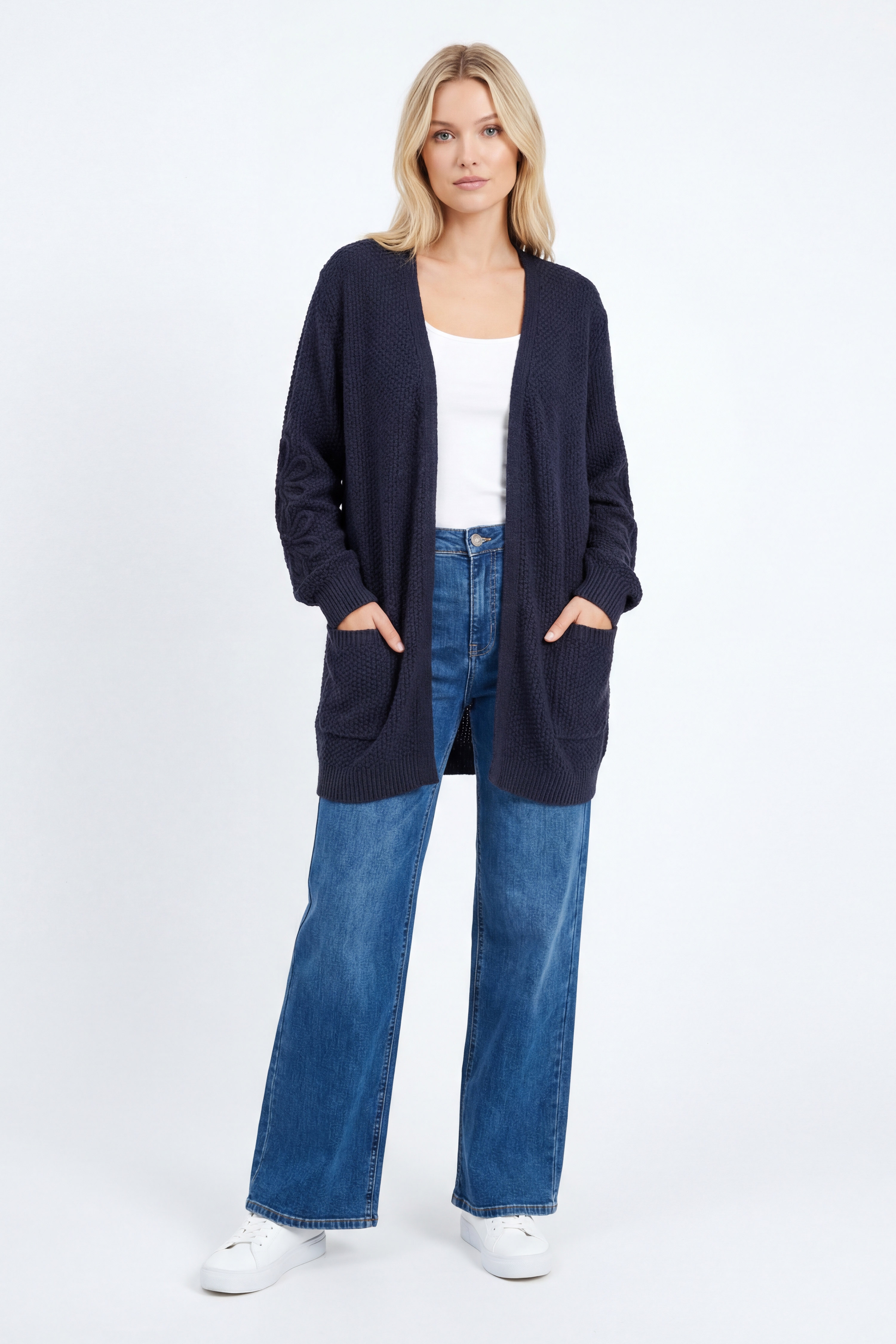 Gilet long texture Jean Marc Philippe – Maille douce et chaude avec broderie sur la manche