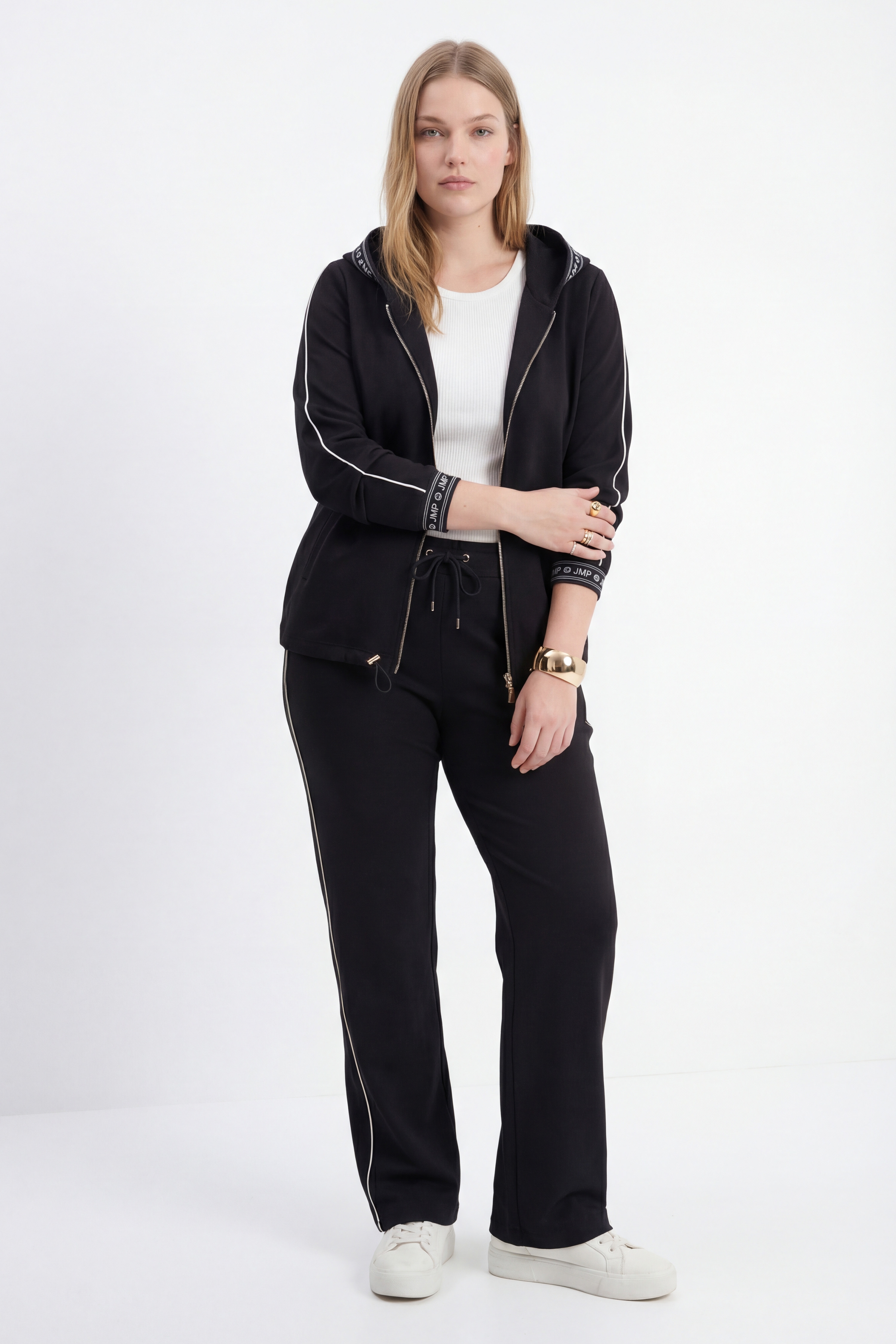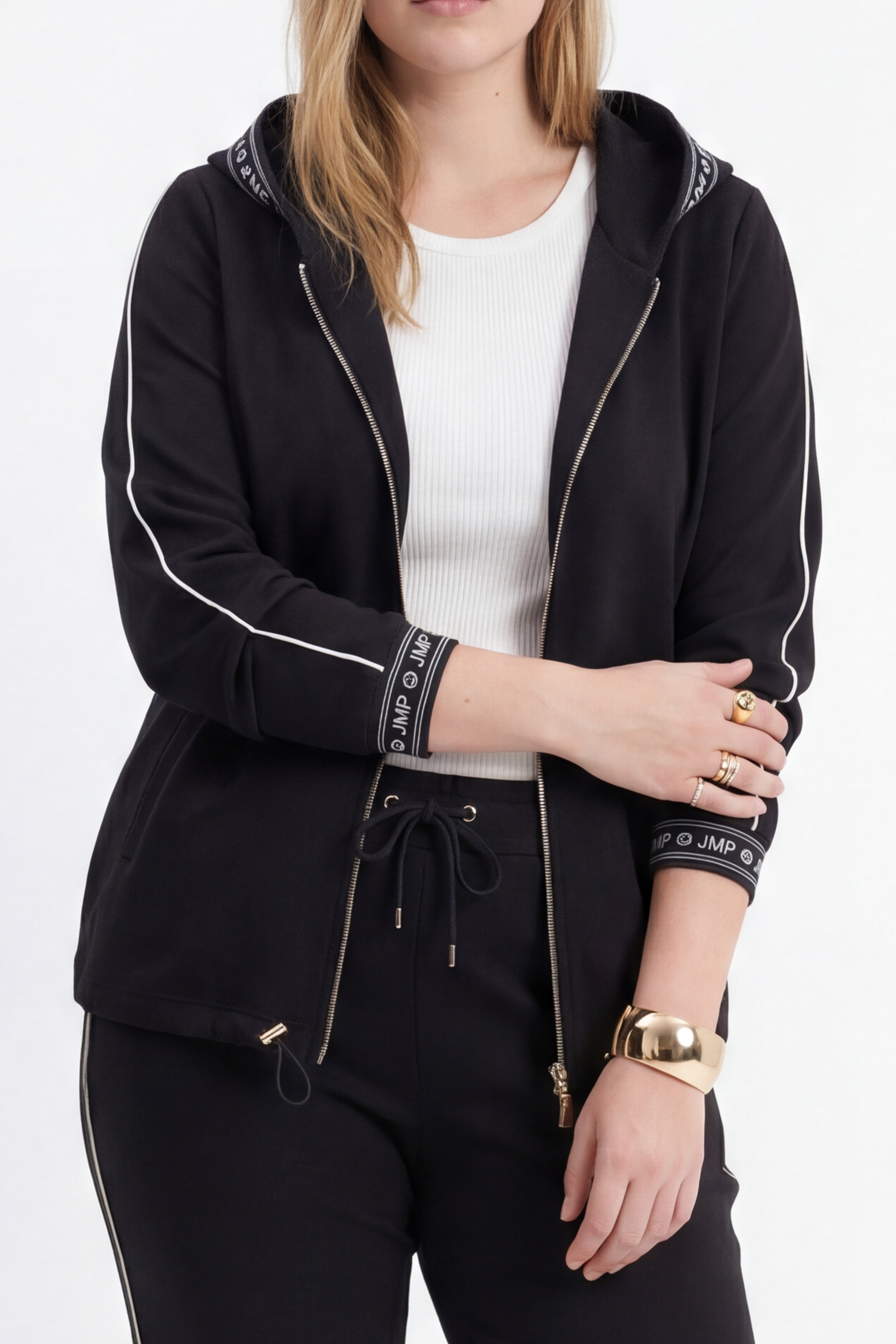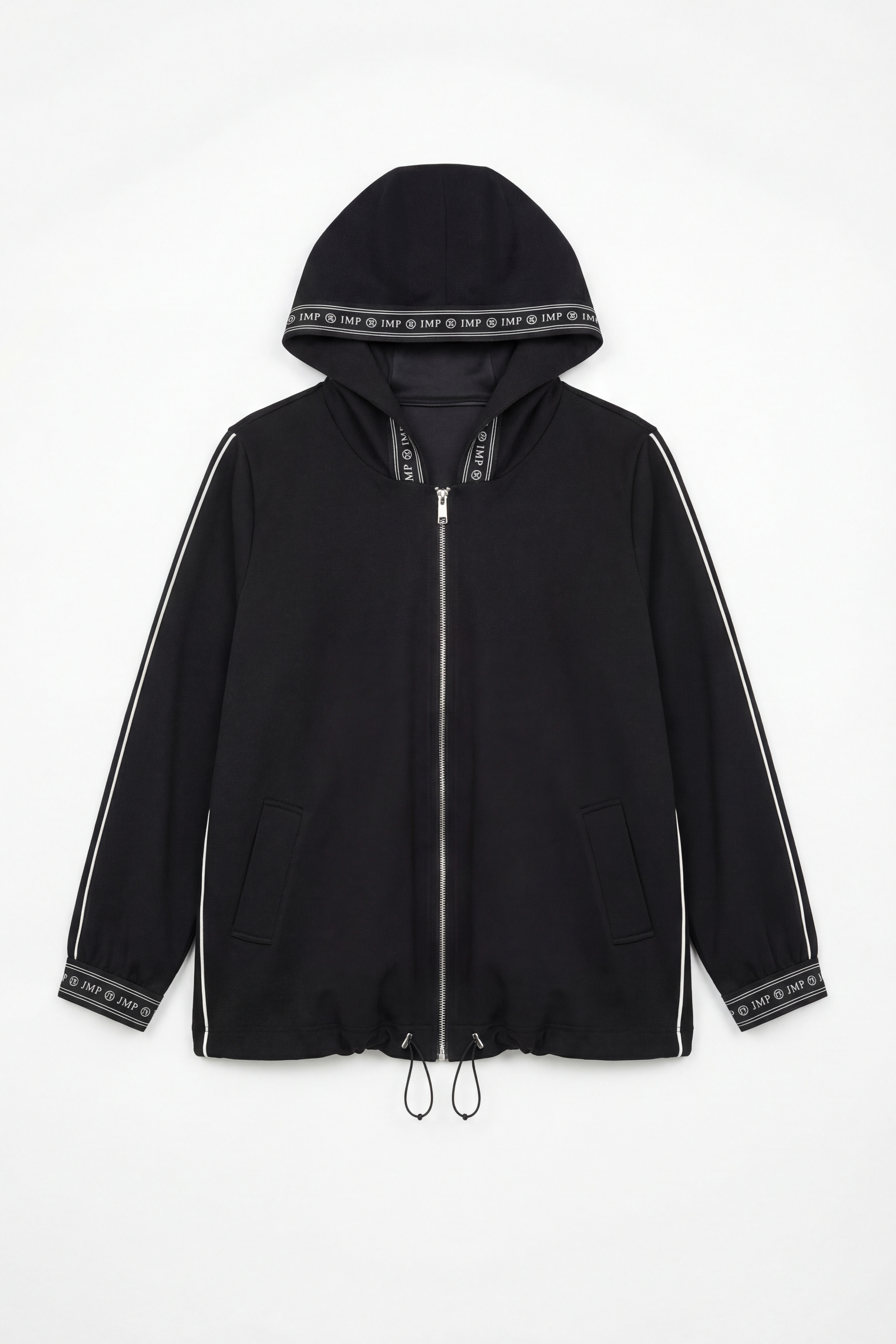 • Capuche bordé d'un galon “JMP”.
