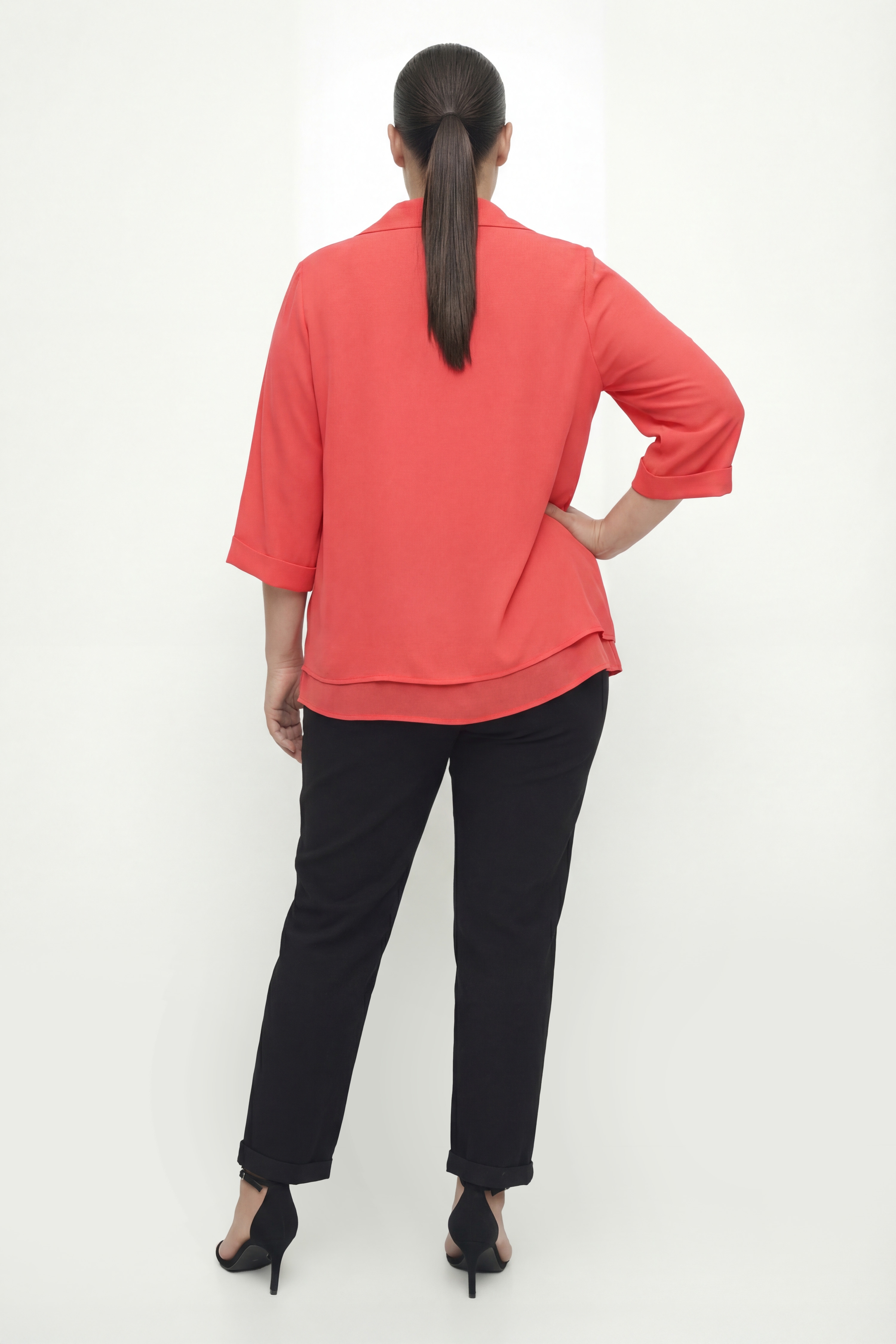 Légère, fluide et délicatement féminine, cette blouse double en voile est la pièce idéale pour illuminer votre silhouette avec élégance.