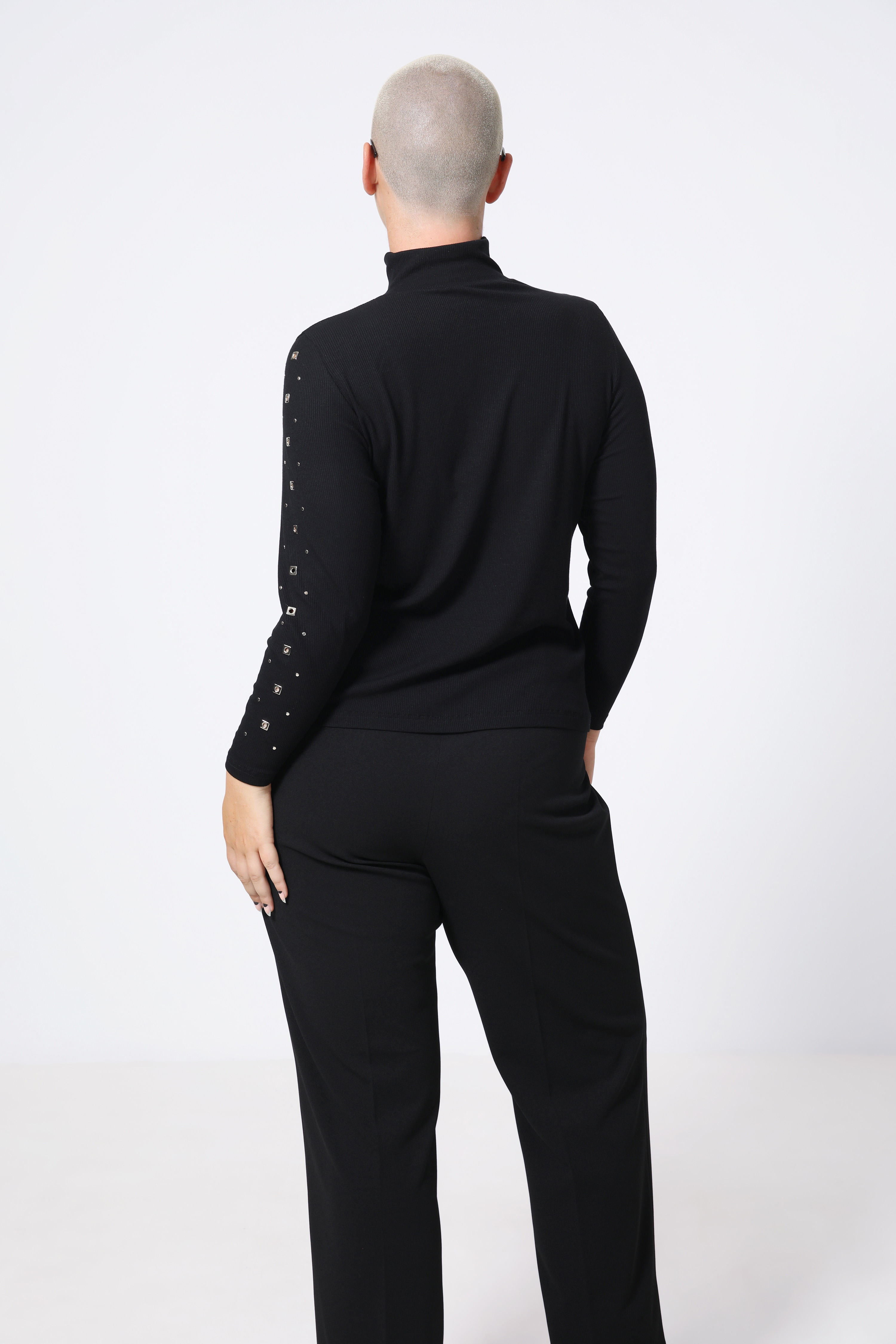 Pull noir cotele viscose elasthanne a clous-Jean marc philippe