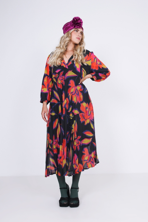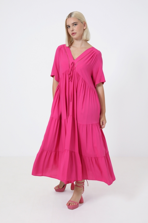 Détails produit :Robe midi en voile uni.Robe plissée.Robe doublée.Encolure en V.Manche ¾ non plissée finie par un poignet boutonné.