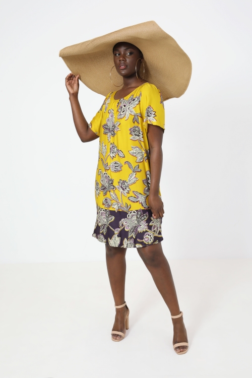 Détails produit :Robe longue avec patch indigo de deux motifs floral et cachemire.Encolure ronde avec une fente finie par un lien ton/ton.Plastron sur le haut bordé d'un galon dentelle.Manche ¾ finie par un fin bracelet.Manche large avec fronces sur le haut.Bas de robe composée des découpes avec jeu de motifs.Suggestion de look : sans indications...