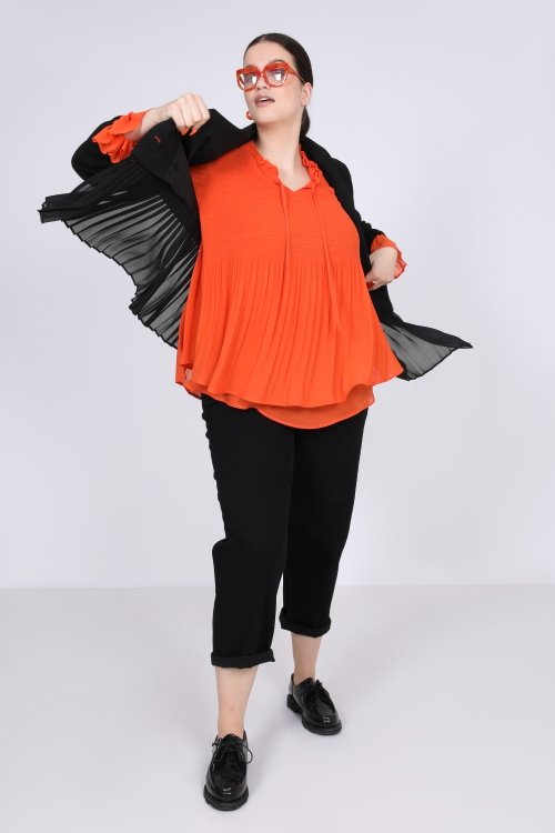 Détail produit :Veste fluide plissée. Manche plissée de forme évasée.Veste doublée.Col tombant en cascade.Se porte ouverte.On peux l associer avec le taza817-royal comme sur la photo .