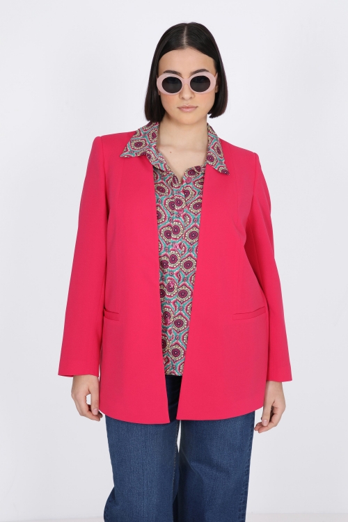 Détails produit :Veste tailleur unie.Veste doublée.Col tailleur.Manche longue.Boutonnage simple.Poches passpoilées avec rabat.Bas de veste fendue sur les côtés.Fentes longues.Suggestion de look : sans indications spécifiques, les accessoires ne sont pas inclus avec ce produit.