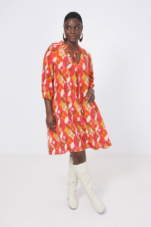 Affirmez votre style avec cette robe fluide à l’imprimé rétro et coloré signée Jean-Marc Philippe. Confectionnée en viscose Ecovero, une fibre écoresponsable issue de sources de bois renouvelables, elle allie élégance, confort et respect de l’environnement. Sa coupe évasée et légère met en valeur toutes les silhouettes, tandis que son col lacé apporte...