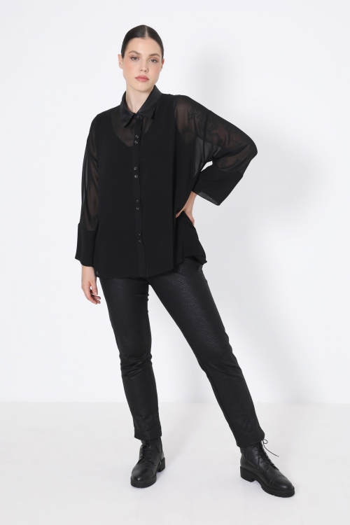 La chemise parfaite pour allier confort et style.Coupe oversize tendance.Matière lyocell douce et respirante.Ultra fluide pour un tombé élégant.Col chemisier.Patte devant,boutonnage invisible.Facile à porter au bureau comme en weekend.Une pièce essentielle, chic et décontractée à la fois.