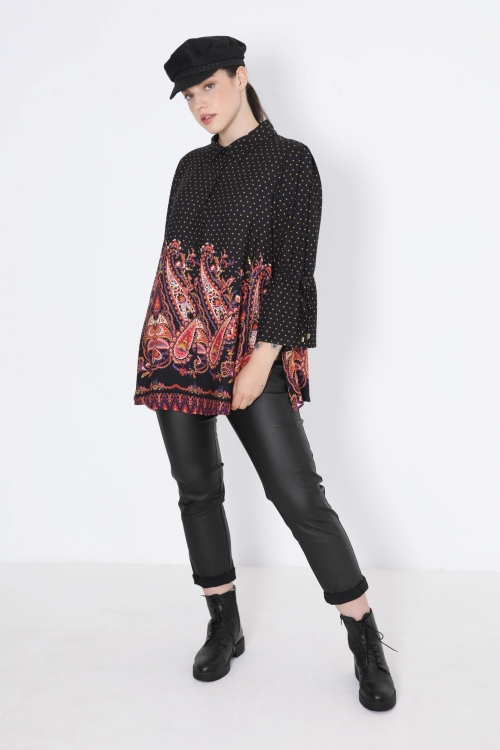 Détails produit :Chemise de forme trapèze en imprimé à pois.Col chemisier.Boutonnage sur le milieu devant.Manche avec fente et poignet boutonné.Suggestion de look : sans indications spécifiques, les accessoires ne sont pas inclus avec ce produit.